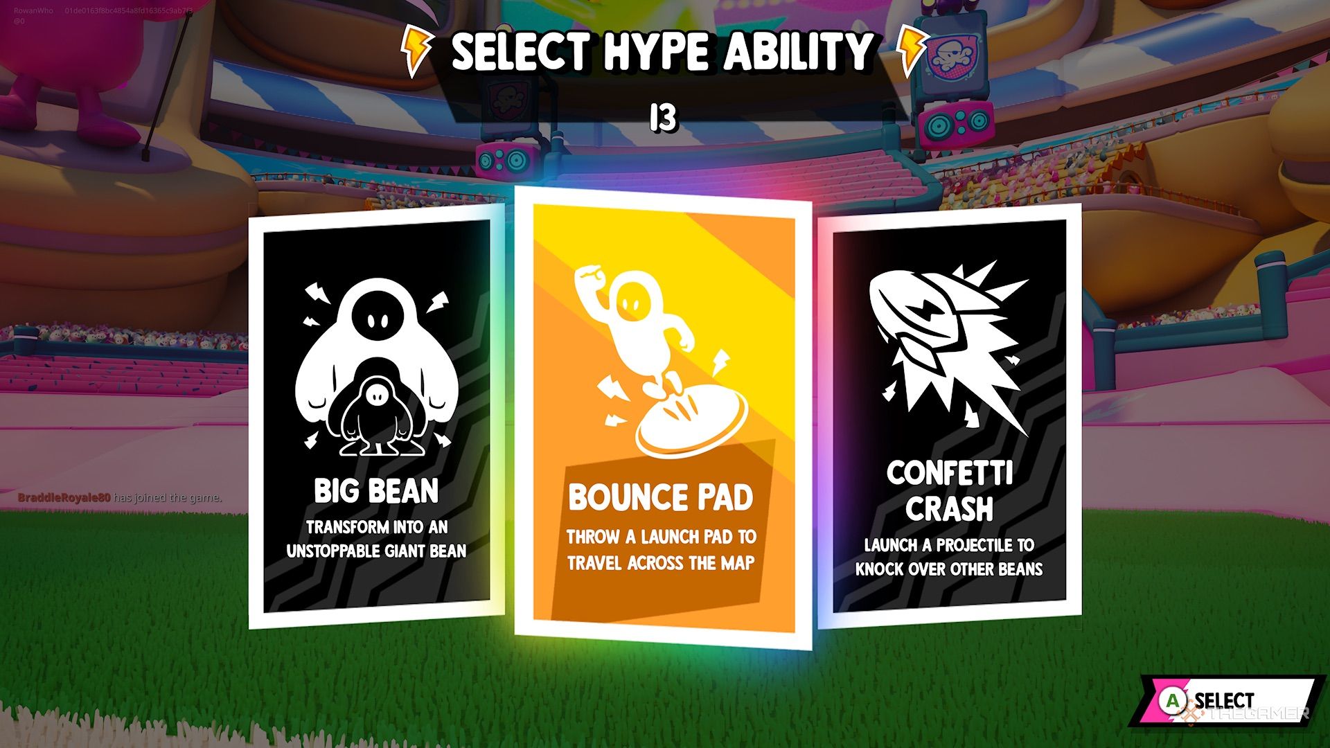 - На экране появится выбор из трех специальных способностей Hype, и вы сможете выбрать ту, которая вам больше нравится (нам очень нравится Confetti Crash!). Следите за заполнением индикатора Hype и используйте свою способность, когда это необходимо.