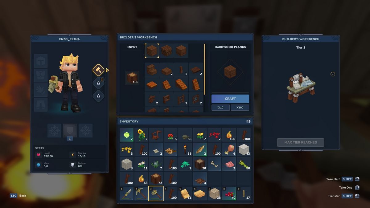 С помощью Столярного верстака вы можете создавать строительные материалы. Просто поместите дерево или камень в верстак, и он отобразит различные вещи, которые вы можете создать. Используйте эти поделки – такие как платформы, двери и крыши – чтобы начать строить свой дом.