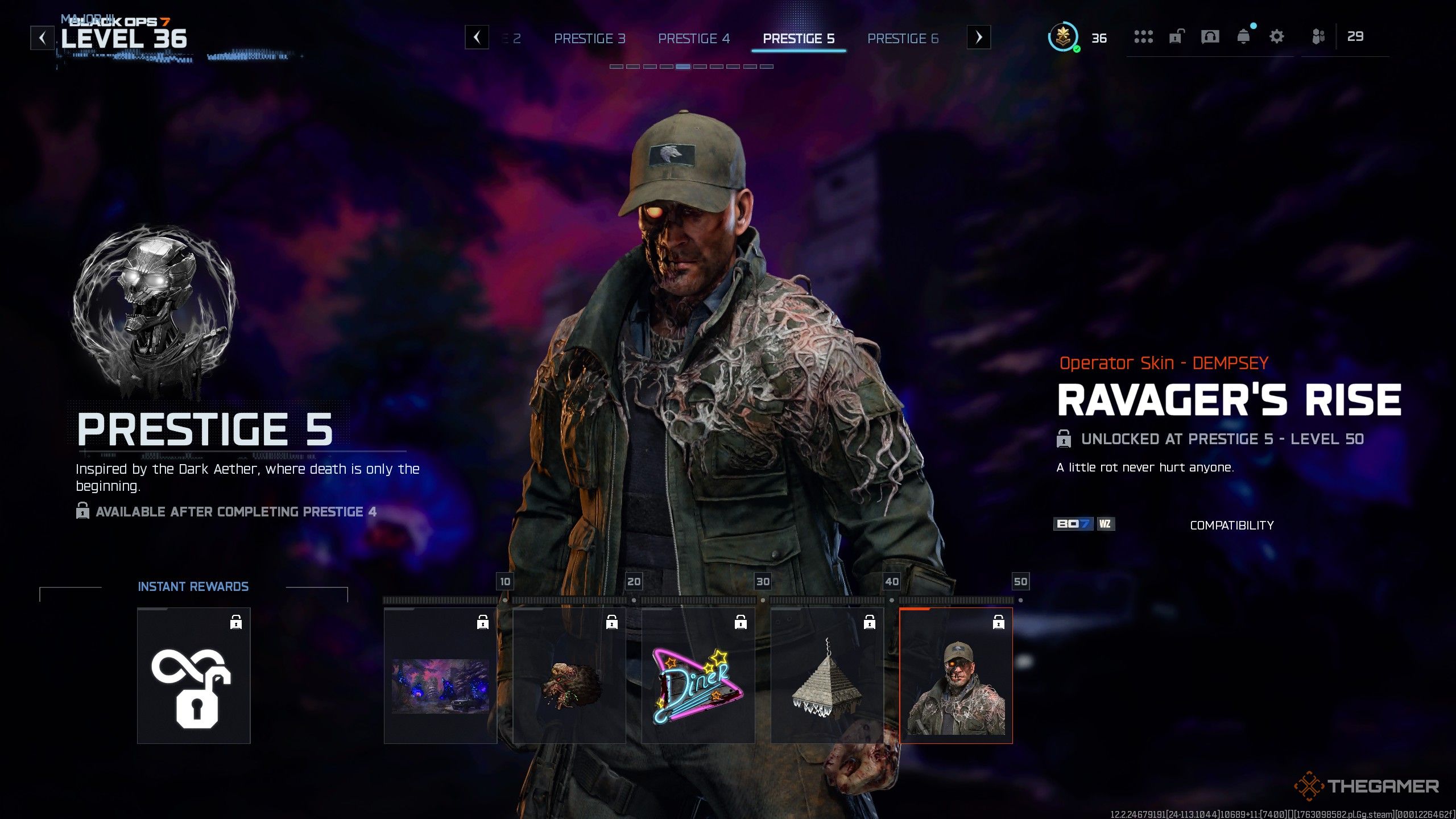 Основная причина продвижения по Престижным рангам — разблокировка крутых косметических предметов. К ним относятся такие вещи, как новые облики Операторов, дизайн оружия, наклейки, талисманы, экраны загрузки и эмблемы. Каждая Престижная ветка предлагает 5 уникальных предметов с определенной темой — например, на Престижном Ранге 4 вы найдете награды в стиле болота, а на Ранге 9 — предметы, основанные на вирусе Cradle.