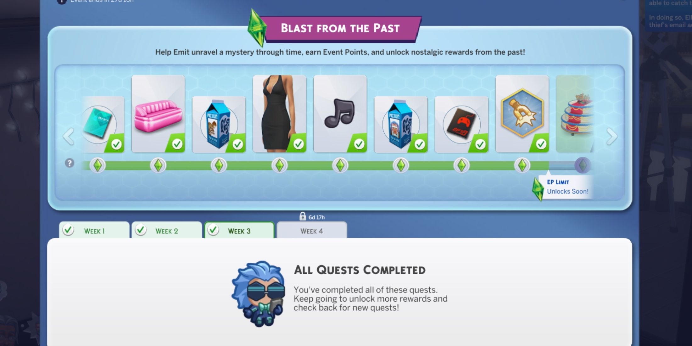 Награды за выполнение квестов третьей недели «Взрыв из прошлого» в The Sims 4