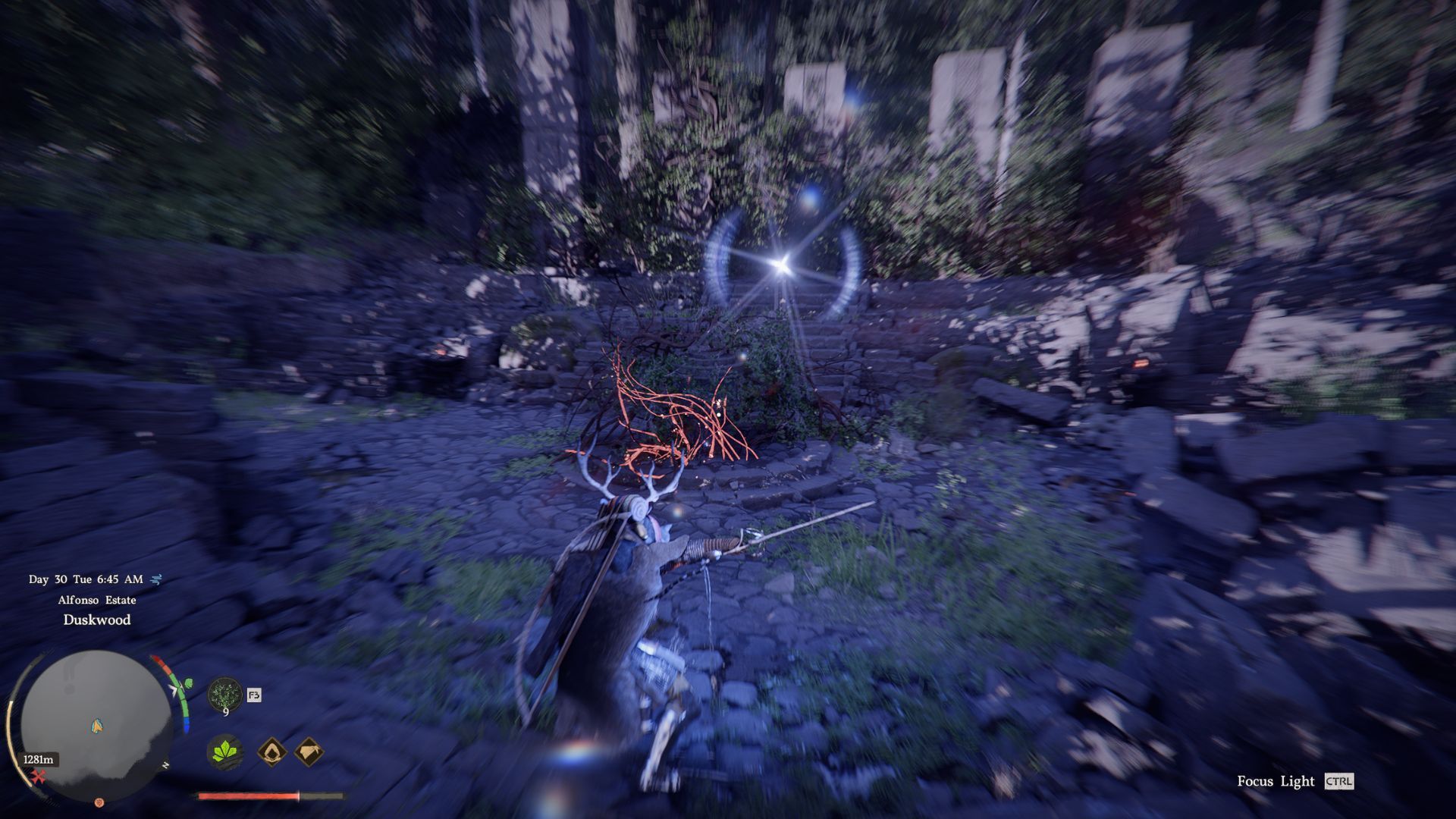 Чтобы избавиться от лиан в руинах, используйте способность Ослепляющая Вспышка. На контроллере она активируется кнопками бампера. На ПК используйте CTRL и левую кнопку мыши. Пока Ослепляющая Вспышка активна, направьте свет на лианы, чтобы сжечь их. Будьте терпеливы, так как для их полного сгорания может потребоваться несколько минут.