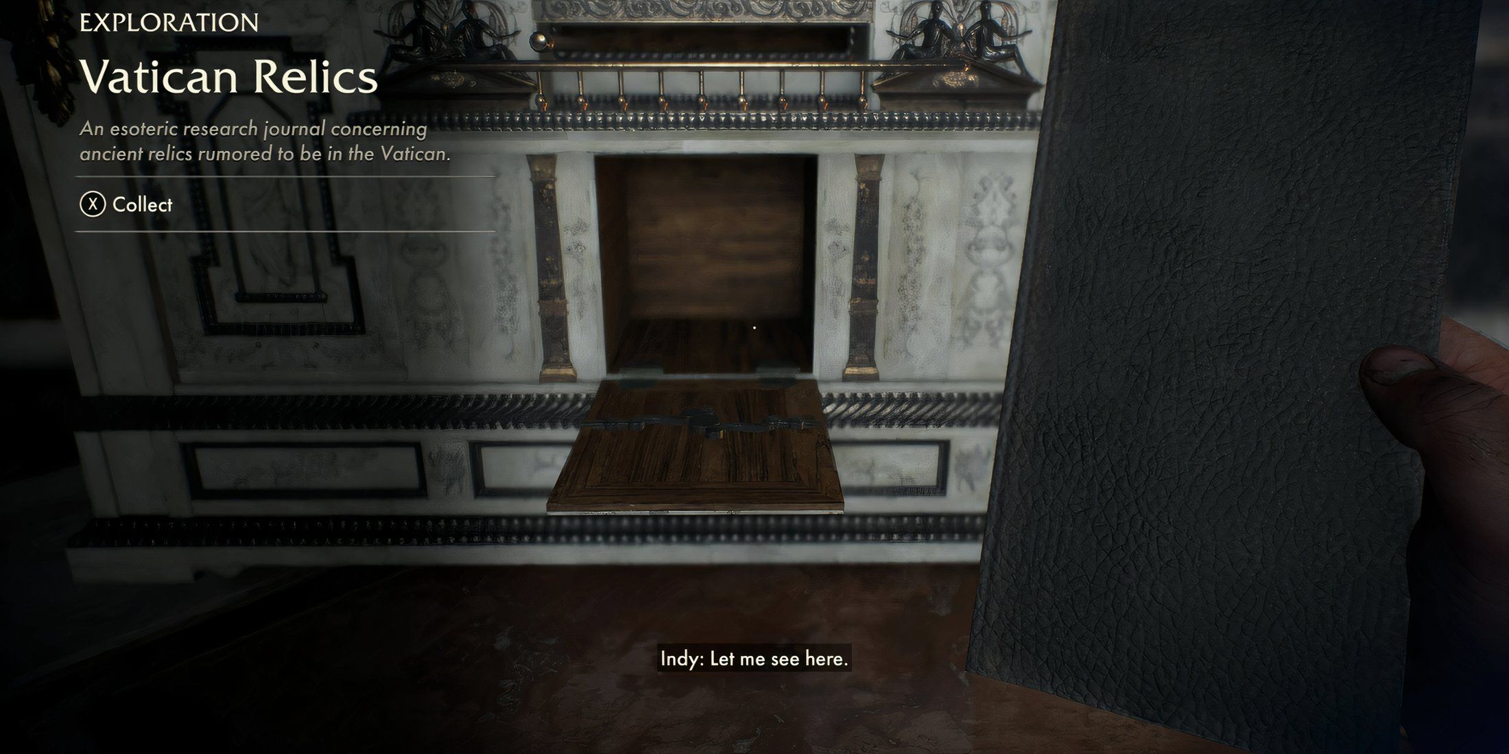 После успешного решения головоломок игрокам будет предоставлен доступ к Журналу реликвий Ватикана, спрятанному в секретном отделении спереди. Этот журнал раскроет местонахождение загадочных артефактов, спрятанных по всему Ватикану. Кроме того, за свое достижение вы получите 100 очков приключений (EXP). Эти очки можно использовать, чтобы разблокировать дополнительные способности из собранных вами приключенческих книг.