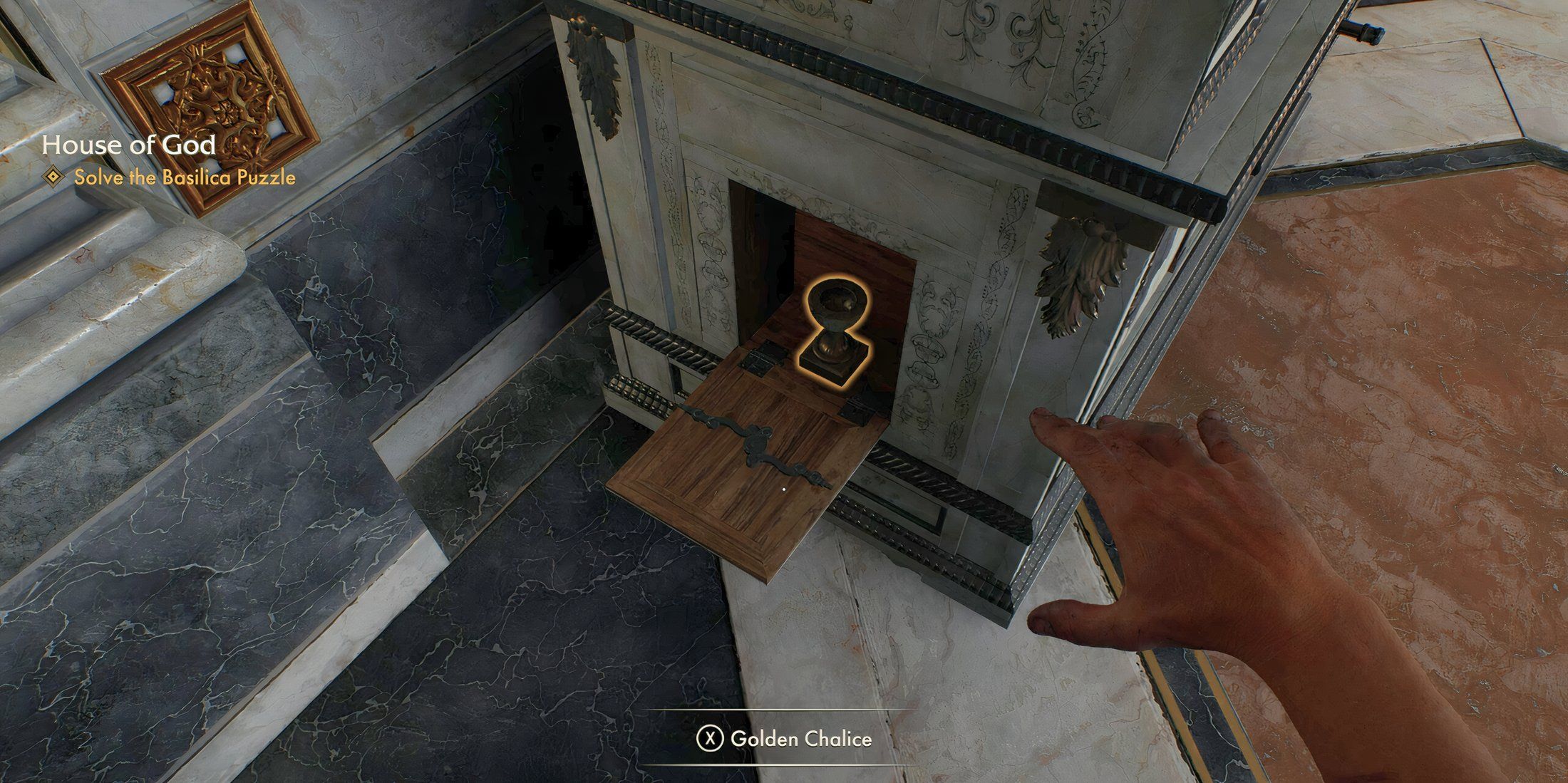 Это действие открывает скрытое отделение слева, позволяющее игрокам получить Золотую Чашу.