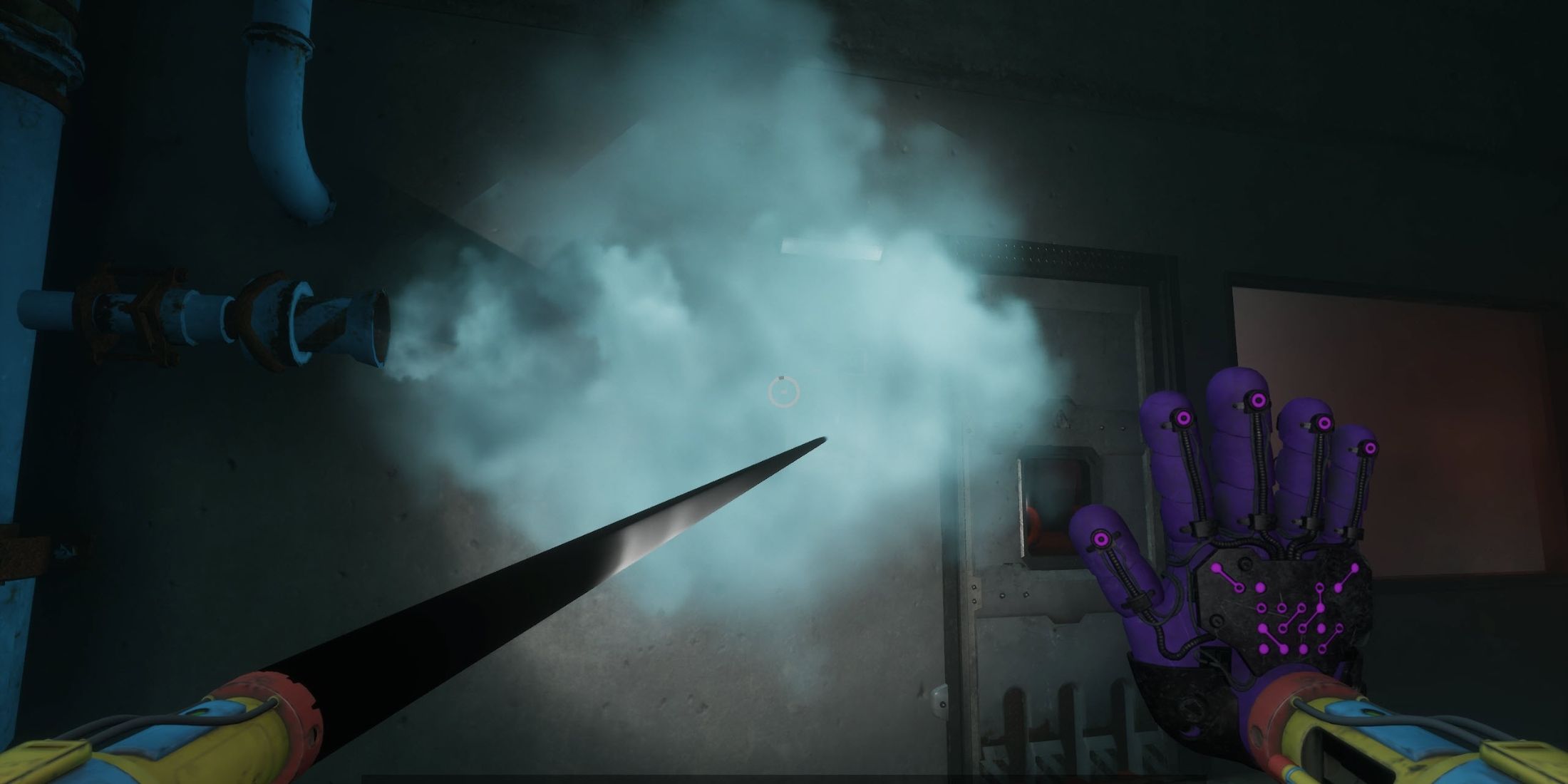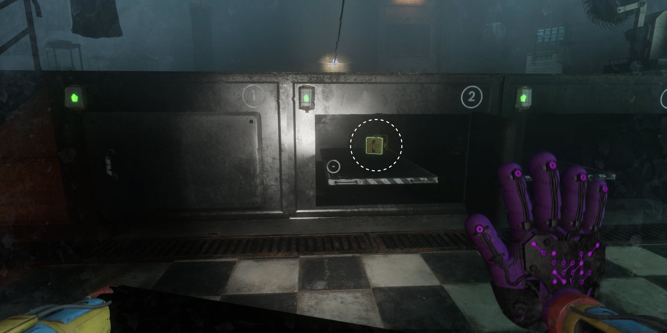 Поскольку Синяя Рука из Grab Pack неподвижна и не может двигаться, вы не можете активировать терминал в морге, чтобы остановить поток холодного газа. Но на верхних ящиках висит еще одна Синяя Рука, которой вам нужно будет как-то манипулировать, чтобы перекрыть подачу замораживающего газа и освободить свою руку.