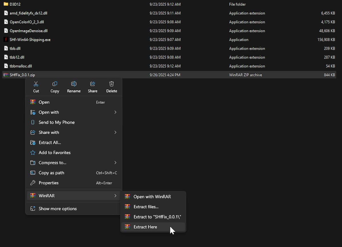 - Перейдите в следующую папку установки Silent Hill f и извлеките zip-файл.