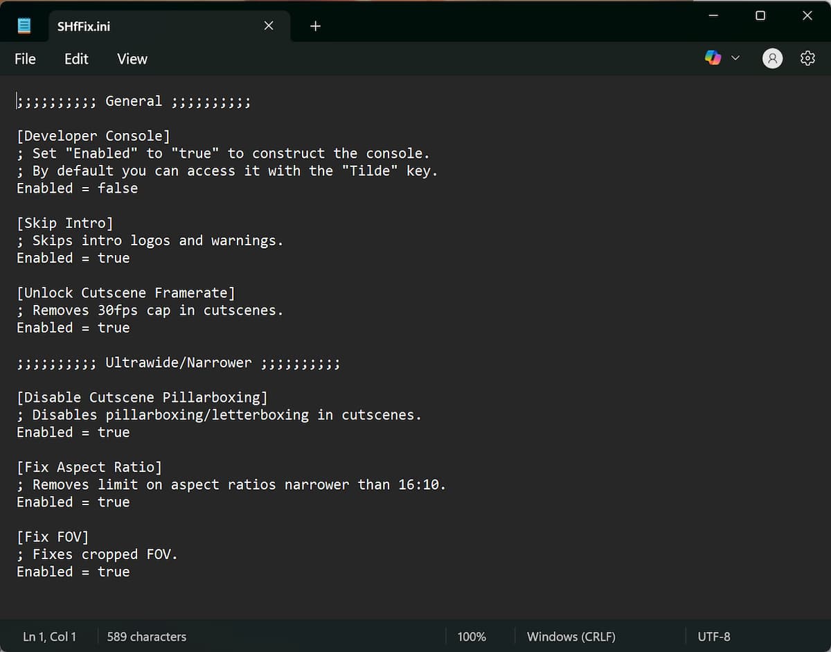 Вы можете включить или отключить эти функции, изменив настройки в файле SHfFix.ini. Отредактировать этот файл можно с помощью любого простого текстового редактора, например, Блокнота или Notepad++.