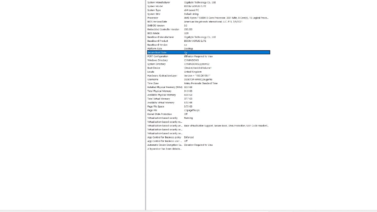 Давайте начнем с проверки, не отключены ли определенные функции. Для этого найдите ‘Run’ в строке поиска Windows или нажмите клавишу Windows + R, чтобы открыть команду Run. Затем введите ‘msinfo32’ и нажмите Enter, чтобы открыть информацию о вашей системе. Найдите ‘Secure Boot State’ – вы должны увидеть это, как показано на изображении.