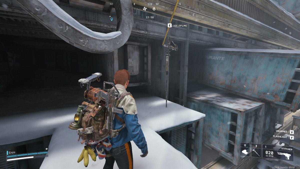 Когда вы прибудете, вы увидите несколько транспортных контейнеров Su Durante. Найдите тросовый перенос, прикреплённый к одному из них. Если у вас возникли трудности с его поиском, проверьте выделенную область на карте на изображении.