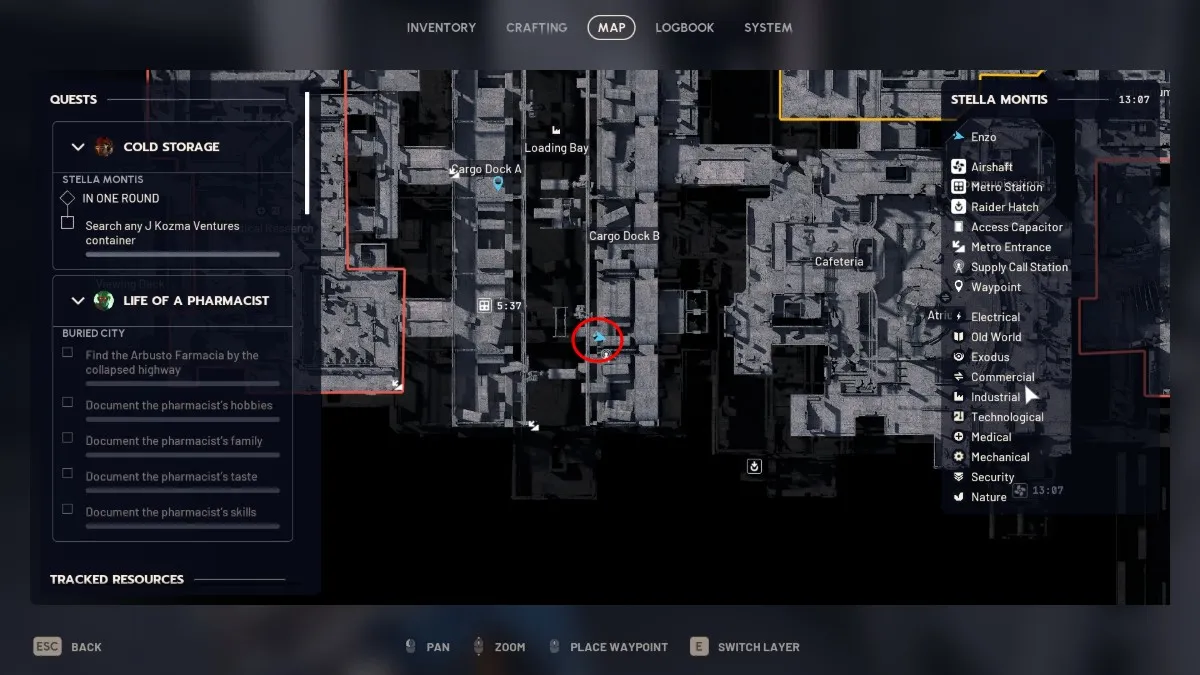 Контейнер J Kozma Ventures находится к югу от Cargo Dock B. Stella Mortis имеет два разных плана этажей, поэтому карта, которую вы видите, зависит от того, на каком уровне вы находитесь. Если вы в подвале, ваша карта будет другой. Поднимитесь на несколько этажей и найдите Cargo Dock B.