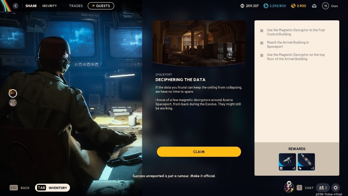 Квест «Космопорт» теперь выполнен, все цели достигнуты. Это знаменует собой успешное завершение, отличающееся от более ранних квестов, «Прокладывая путь» и «Чистые мечты».