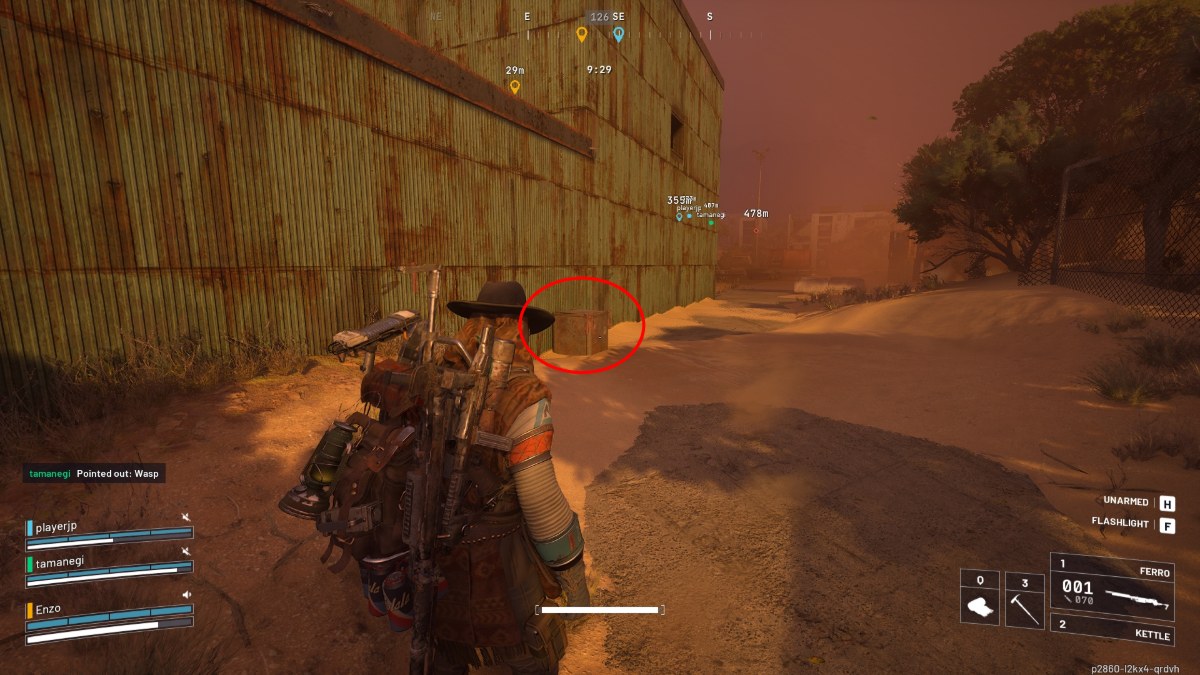 Это место обычно довольно безопасно, потому что сюда не забредают многие игроки, если только они не начинают игру поблизости. Когда вы доберетесь до Склада, поищите спрятанный тайник снаружи.