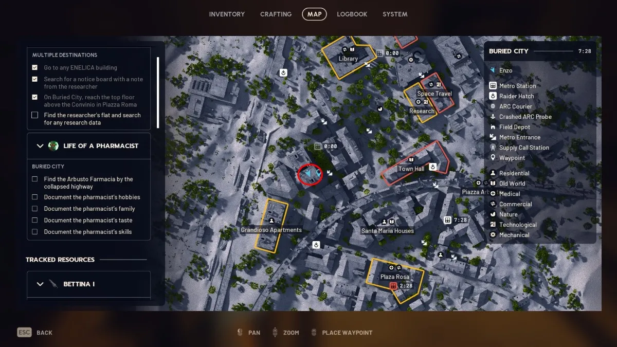 После выполнения этих задач вы отправитесь в Захороненный город, чтобы найти исследовательские данные. Вход находится на верхнем этаже здания над Convinio в Piazza Roma – посмотрите на карту для получения указаний.