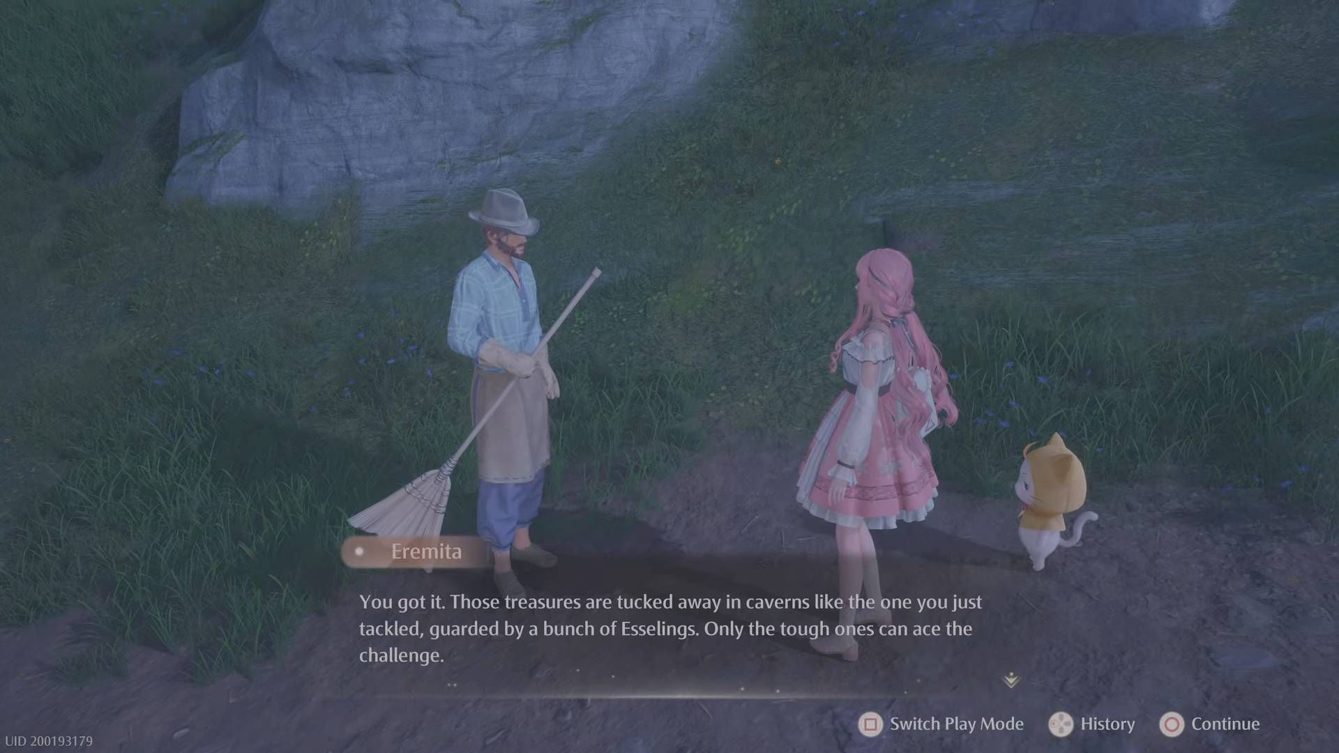 По вашему возвращению он выразит благодарность Никки и расскажет ей о ближайшей пещере, где хранится ценное сокровище для стилистов. Следуйте его совету и затем исследуйте указанную пещеру. Внутри пещеры вы можете наткнуться на дневник, в котором упоминается нечто под названием «Аромат прихоти». Пройдите через пещеру впереди и обнаружите большую комнату, содержащую сундук и несколько Эсселингов, которых нужно победить. Очистите их, откройте сундук и продолжайте свое путешествие глубже внутрь.
