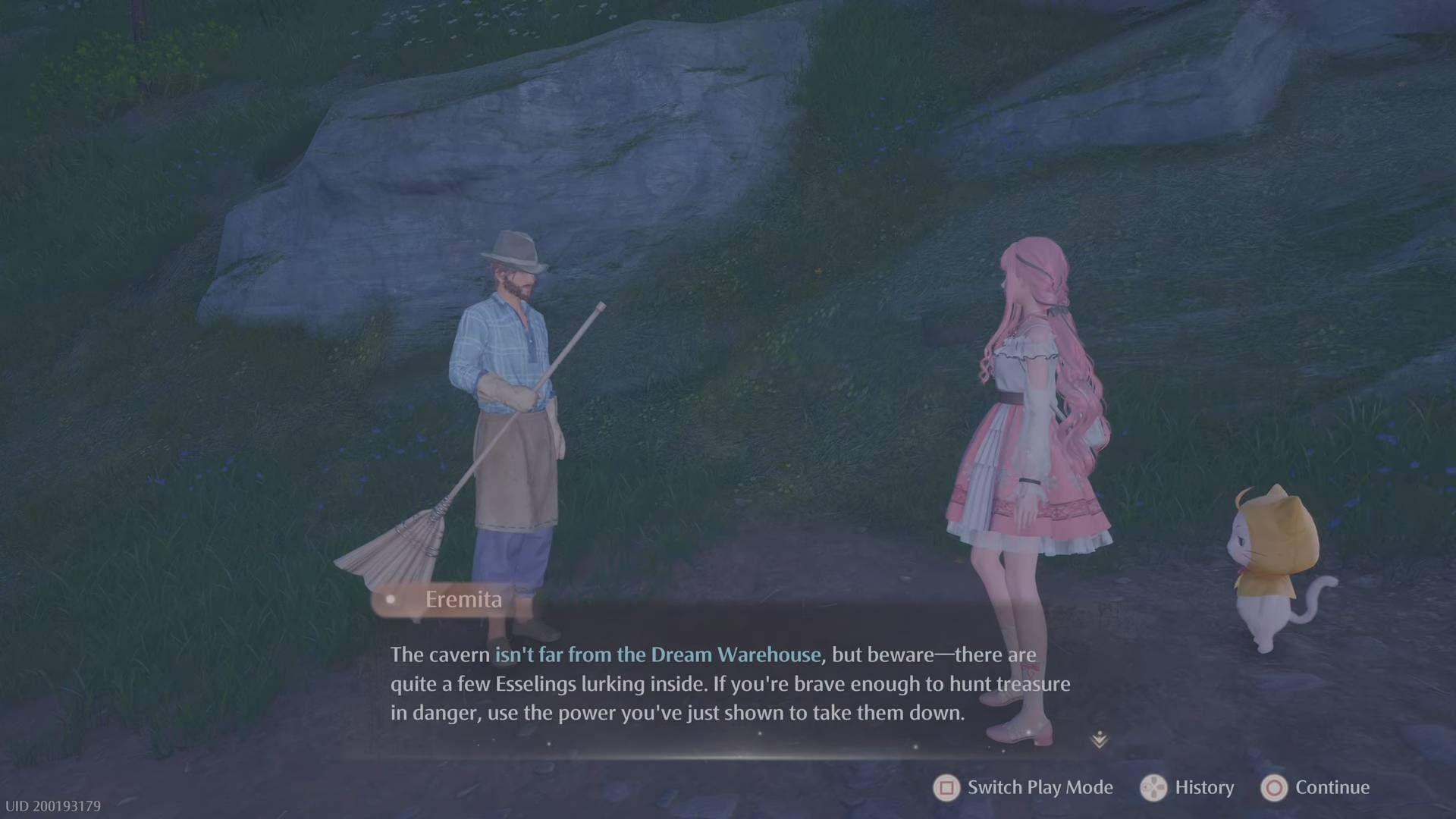 По вашему возвращению он выразит благодарность Никки и расскажет ей о ближайшей пещере, где хранится ценное сокровище для стилистов. Следуйте его совету и затем исследуйте указанную пещеру. Внутри пещеры вы можете наткнуться на дневник, в котором упоминается нечто под названием «Аромат прихоти». Пройдите через пещеру впереди и обнаружите большую комнату, содержащую сундук и несколько Эсселингов, которых нужно победить. Очистите их, откройте сундук и продолжайте свое путешествие глубже внутрь.