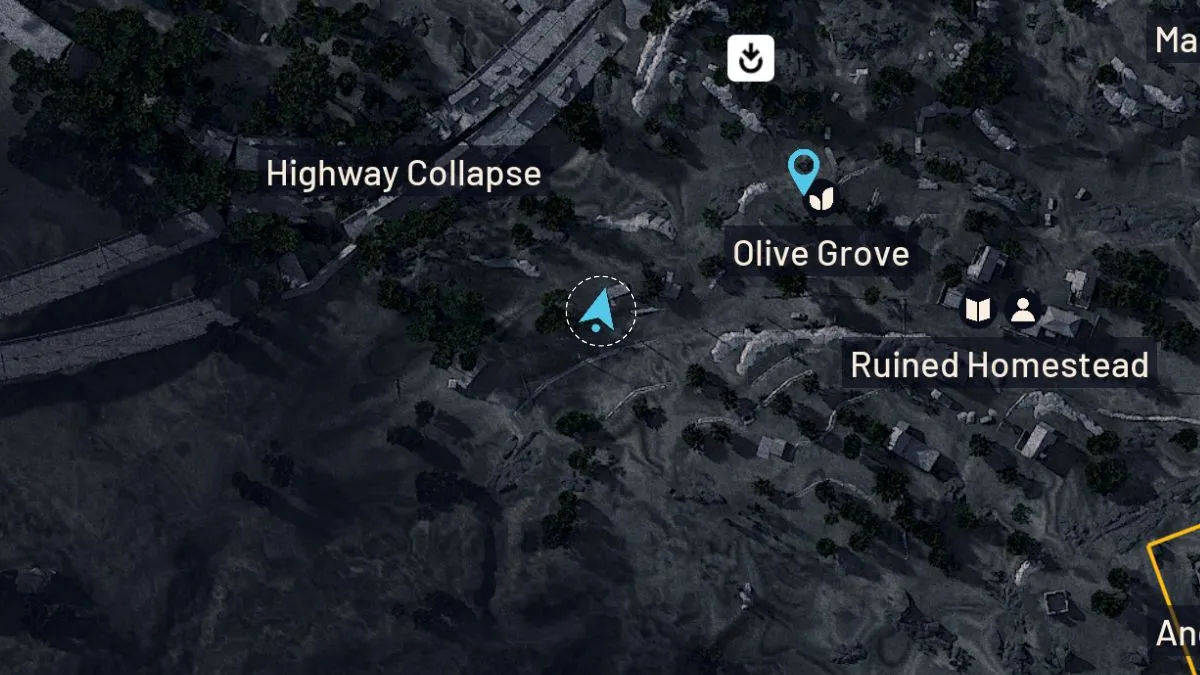 Двигайтесь на юго-запад от Оливковой рощи, чтобы найти Коммуникационный терминал. Будьте осторожны – эта область патрулируется опасными ARC, включая ракетчика и бомбардира, вокруг Оливковой рощи и Разрушенной усадьбы. Лучше избегать этих мест и сразу направляться к точке, отмеченной на вашей карте.