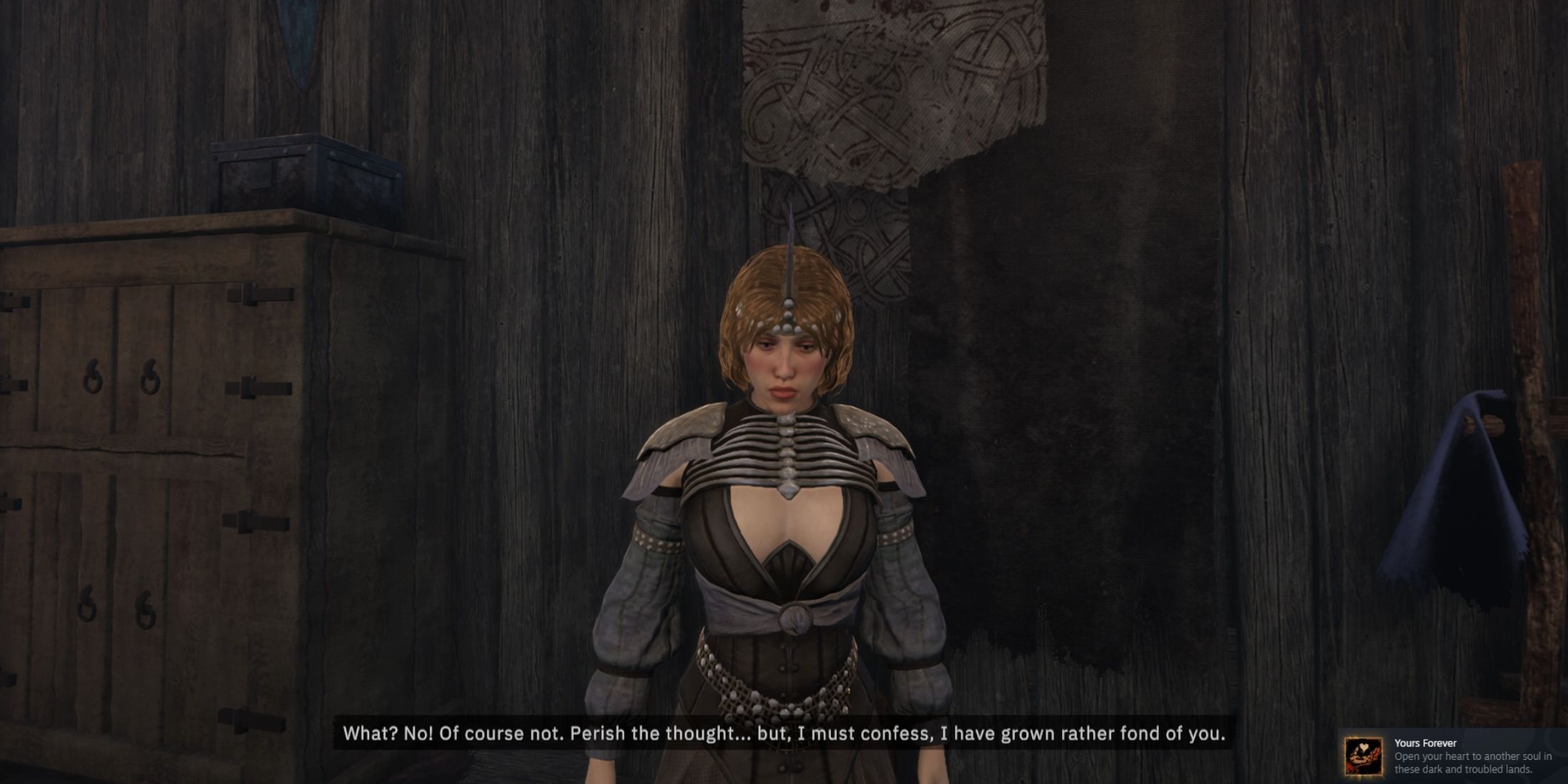 Позже, если вы решите остаться с ней, она может попросить вашу помощь в ремонте окружения ее дома, что может привести к квесту под названием Stone By Stone. Кроме того, во время будущих визитов она может называть вас «дорогой».