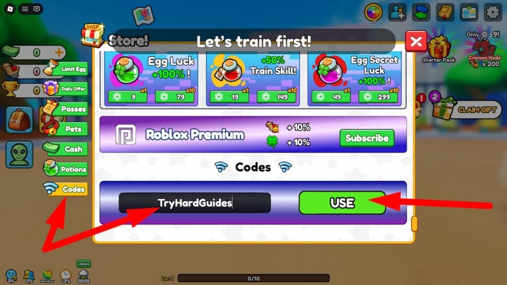 - Нажмите на кнопку «Магазин» слева на экране, затем прокрутите вниз до самого низа окна «Магазин» или нажмите кнопку «Коды» для быстрого доступа.