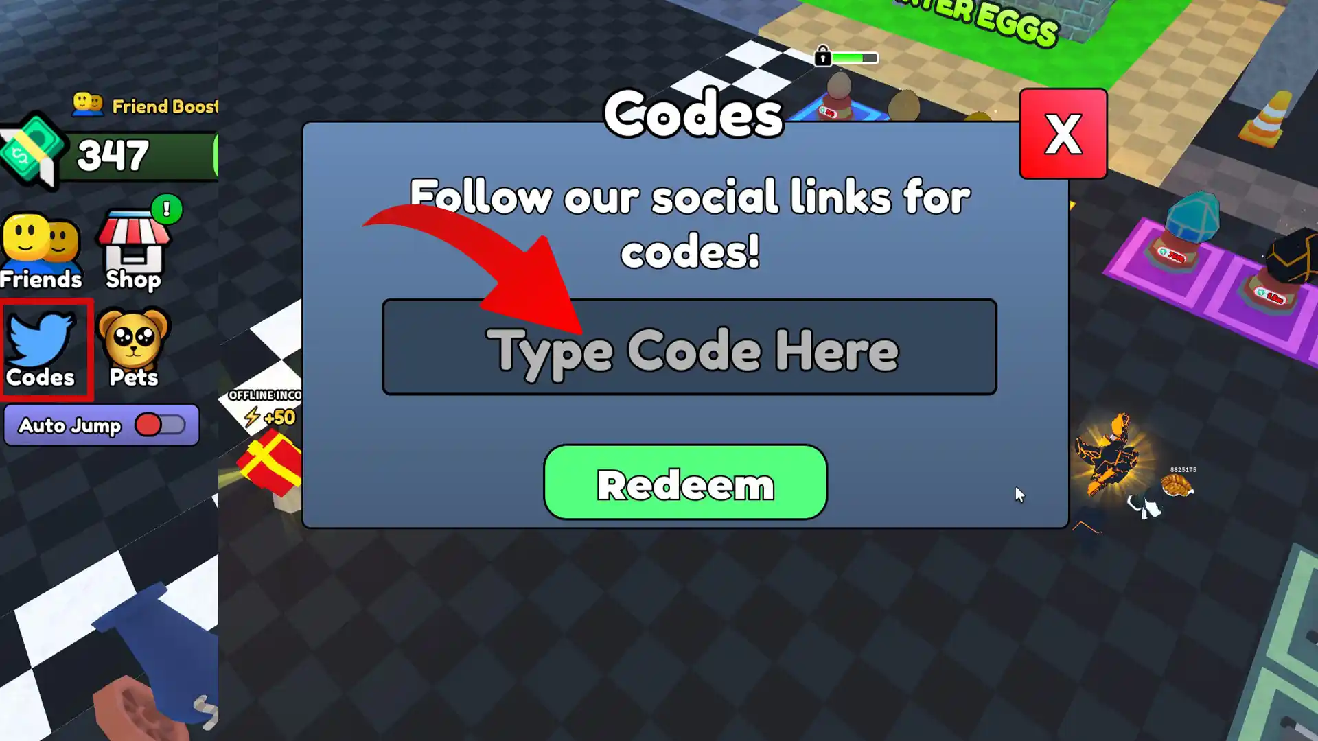Получение кодов в этой игре простое! Просто запустите игру и нажмите кнопку ‘Codes’ слева на экране – у неё значок синей птицы. Появится окно, где вы сможете ввести свой код и нажать ‘Redeem’.