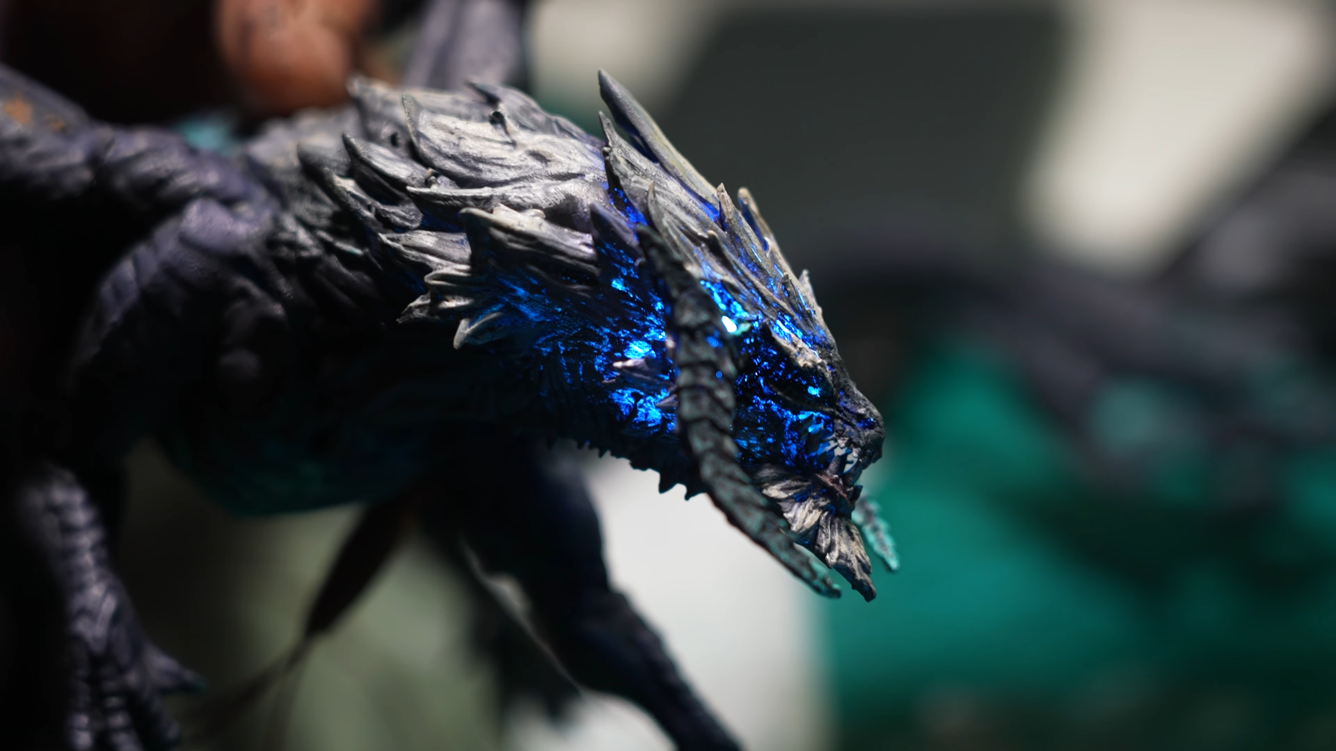 Драконы требуют гораздо больше времени на создание. Древний Дрейк сияет красивым, магическим синим светом изнутри. Художники уделили невероятное внимание деталям – каждый глаз барона Нашора нарисован индивидуально, а его золотые когти тщательно изготовлены.
