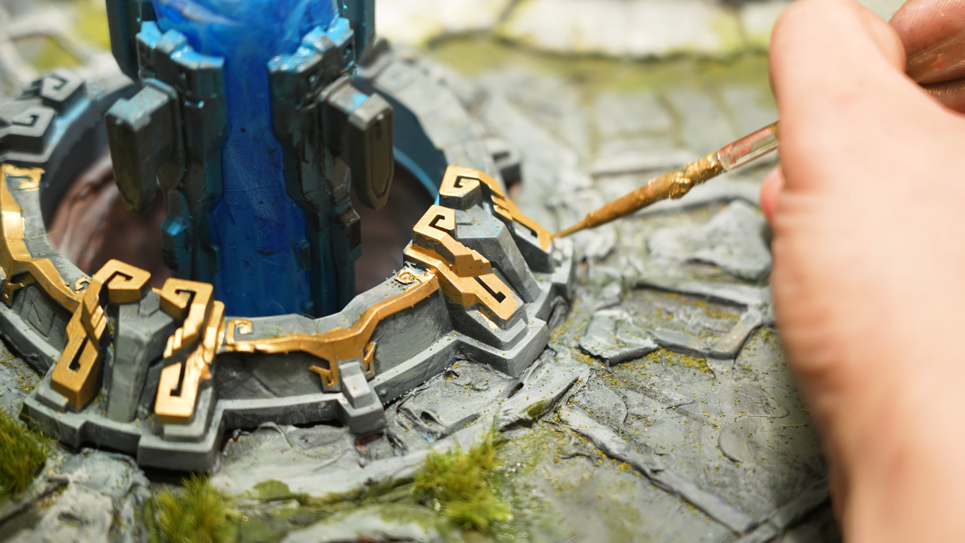 Он начинает с создания ландшафта на поролоновом коврике, покрывая его материалом для лепки. Сначала он формирует базовую поверхность земли, и даже на этой ранней стадии у него есть хорошее представление о том, где будут находиться такие элементы, как скалы и здания. Пока он грубо формирует камни из алюминиевой фольги и большего количества пасты, он также активно использует 3D-печать для карты. Это включает в себя создание оснований, башен и даже монстров, которые он объяснит более подробно позже.
