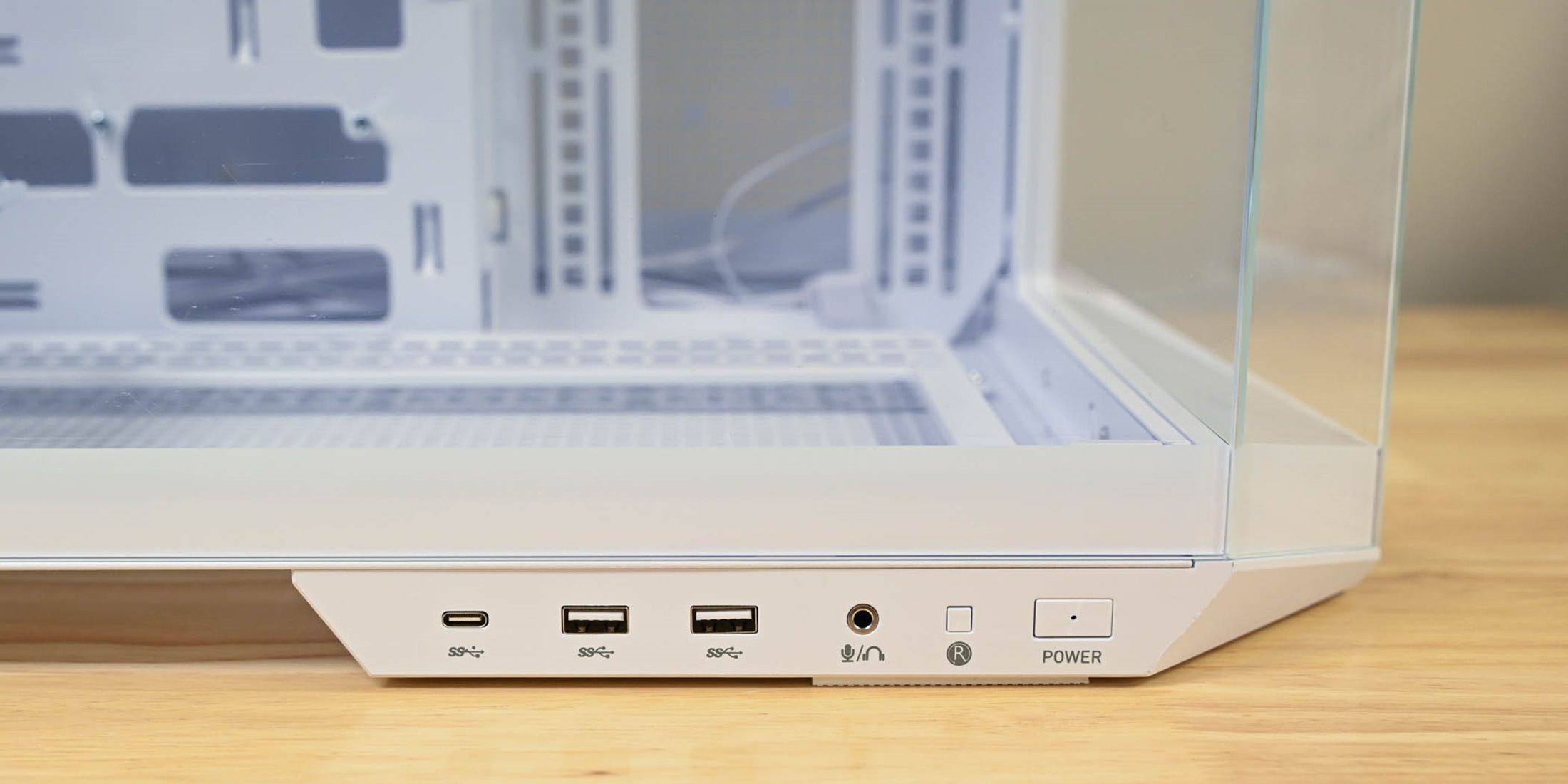 Панель ввода-вывода (I/O) расположена под левой панелью из закаленного стекла, рядом с передней частью корпуса. Он оснащен: одним портом USB 3.2 Type-C, двумя портами USB 3.2 Gen 1, комбинированным разъемом для наушников и микрофона, а также кнопками питания и сброса. Хотя некоторые геймеры могут выбрать панель ввода-вывода сверху, большинство пользователей двухкамерного корпуса позаботятся о том, чтобы было достаточно места для легкого доступа к этим соединениям.