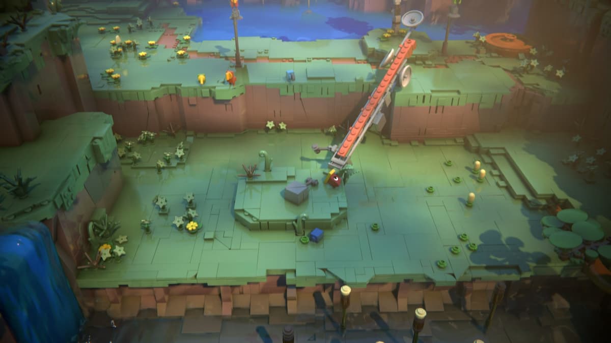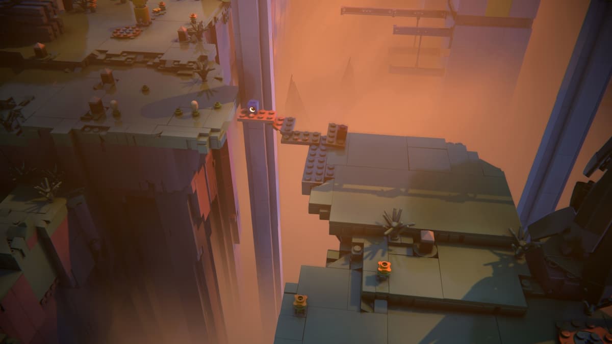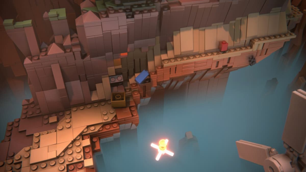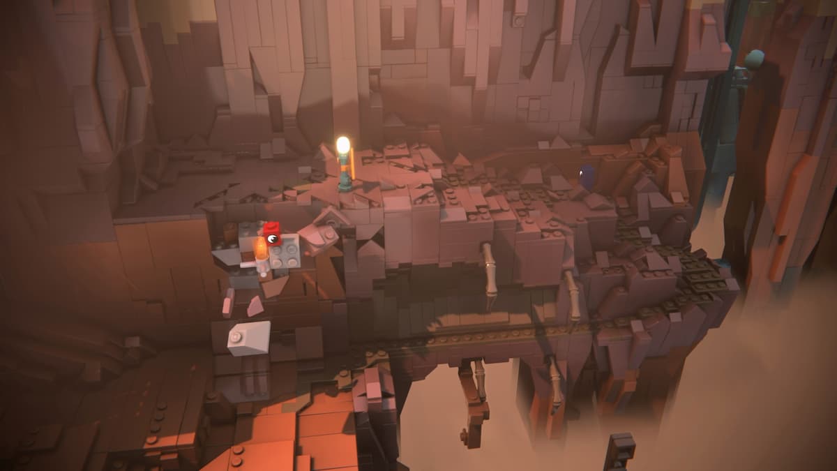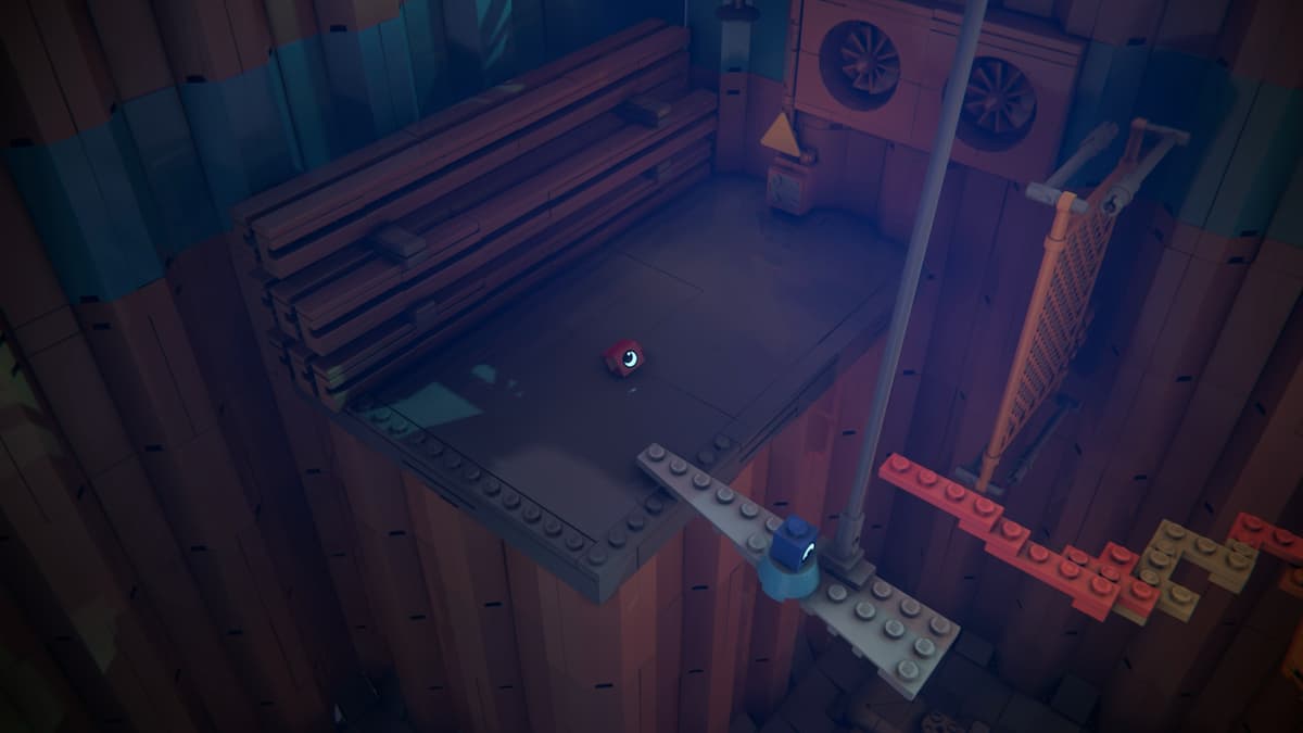 После этого вы обнаружите еще две области, где нужно соединять кирпичи. Сначала вы построите путь, чтобы соединить две платформы. Затем вам нужно будет собрать более крупные кирпичи с левой стороны и использовать их для создания платформы, на которую можно подняться.