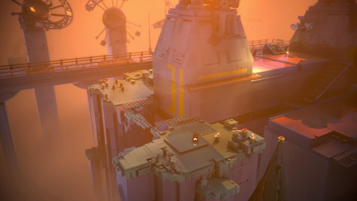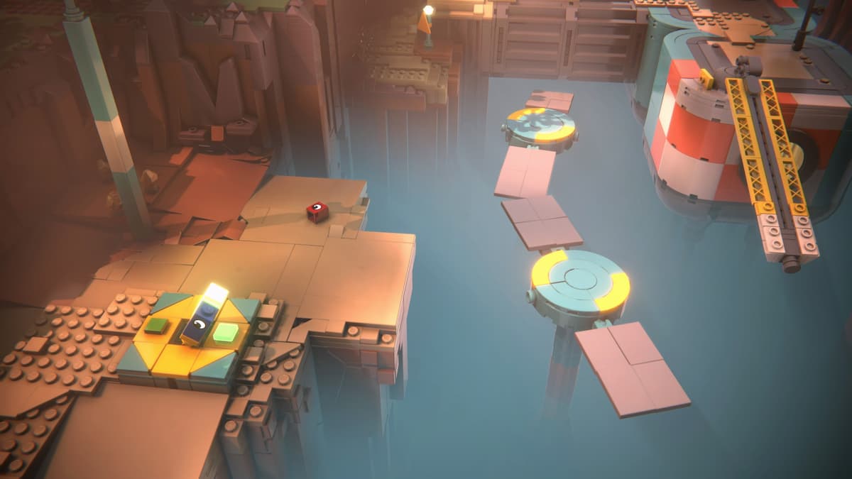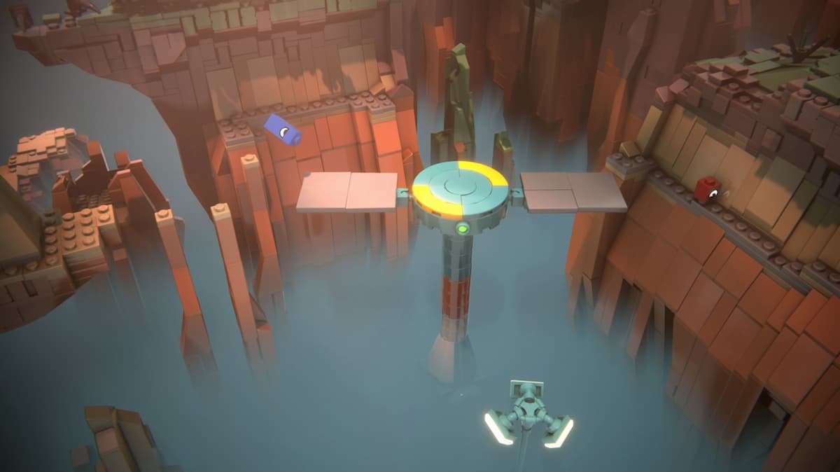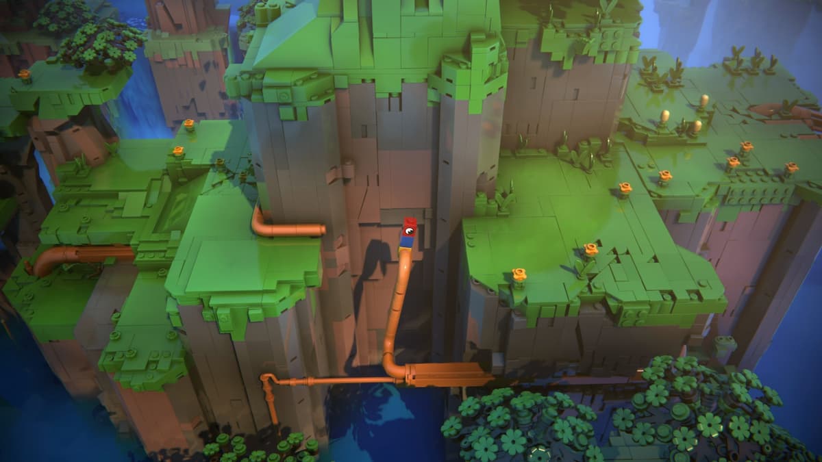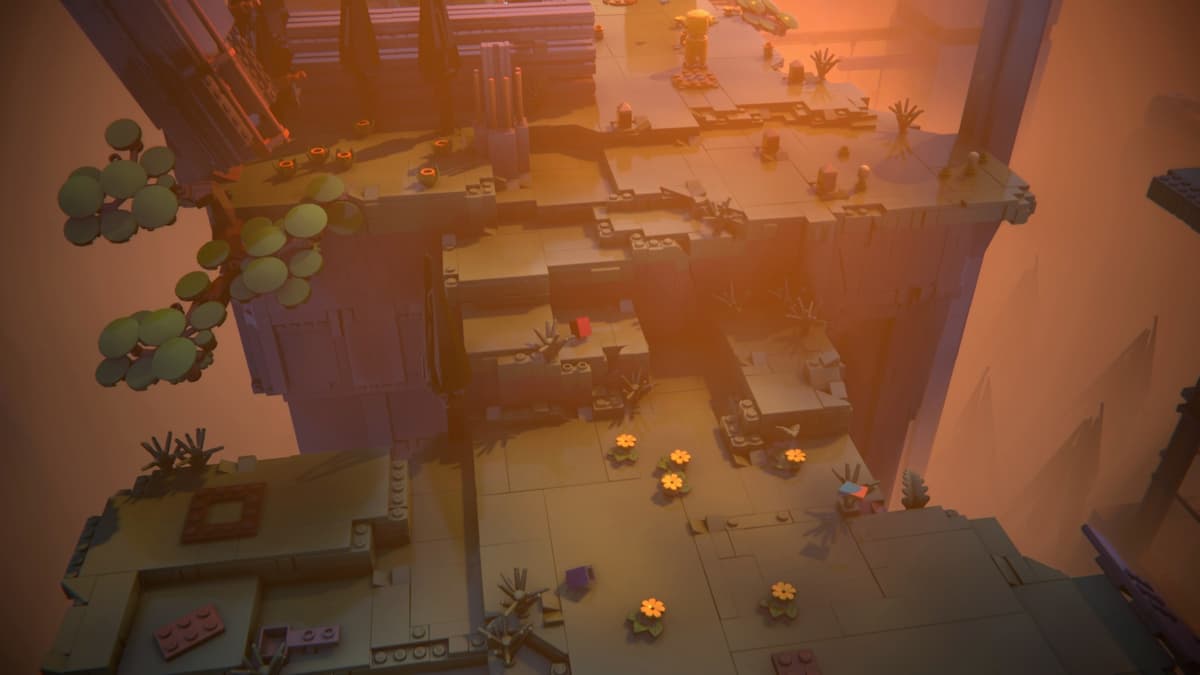 После этого вы обнаружите еще две области, где нужно соединять кирпичи. Сначала вы построите путь, чтобы соединить две платформы. Затем вам нужно будет собрать более крупные кирпичи с левой стороны и использовать их для создания платформы, на которую можно подняться.