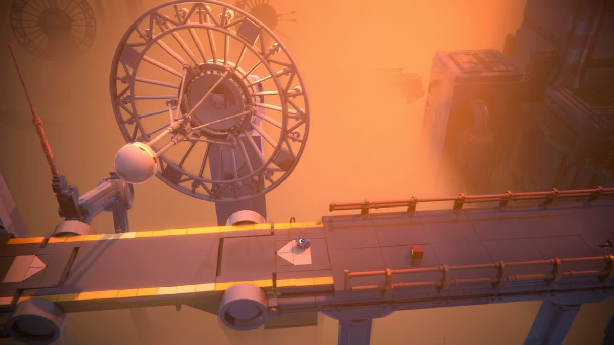 Главная проблема с этим кадром – камера: она почти полностью сосредоточена на персонаже, включающем переключатель, запускающий движение платформы.
