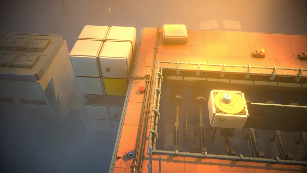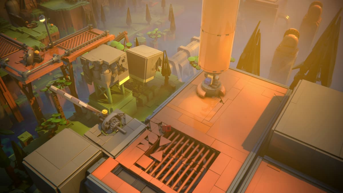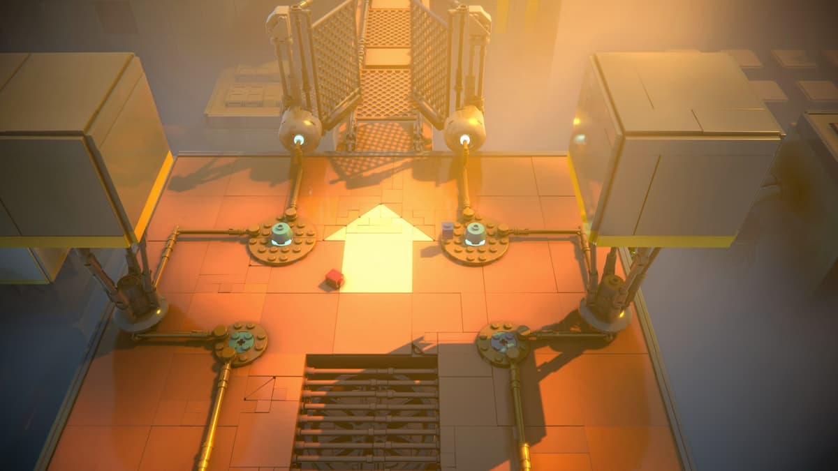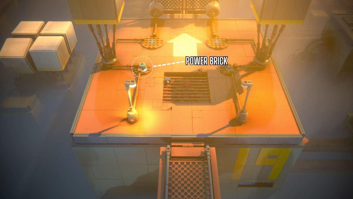 Продолжайте двигаться прямо, и вы дойдете до ворот, которым требуется питание. У них отсутствует источник энергии, который можно найти слева. Чтобы добраться до него, вам нужно будет переключить три желтых переключателя, чтобы активировать платформу.