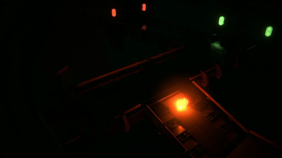 Дрон может быть поврежден, но это не страшно — нам нужна легкая деталь, которую он перевозит. Прикрепи ее, а затем отправляйся во тьму! Твой путь будет отмечен зелеными огнями, а деталь от дрона даст тебе немного дополнительного света, чтобы видеть.