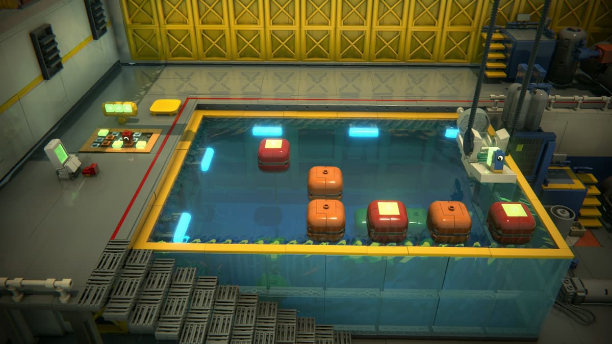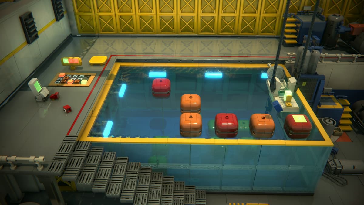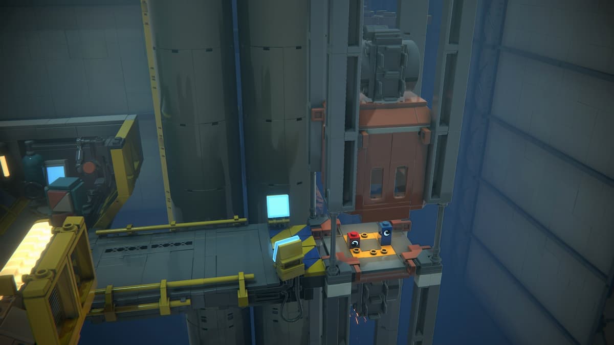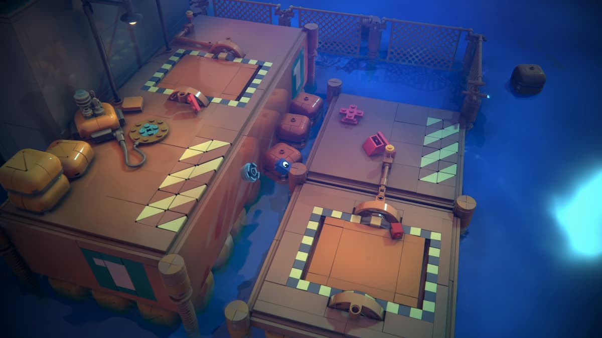 В этой части игры игрокам требуется чинить сломанные части ракеты под водой. Ищите пузыри воздуха – они указывают на те детали, которые нуждаются в ремонте, а процесс починки включает в себя переключение выключателей. Задача игрока за красную команду – построить маршрут для синего персонажа, используя платформы.