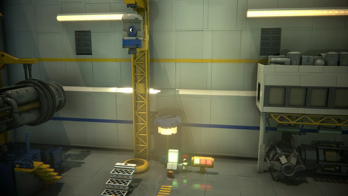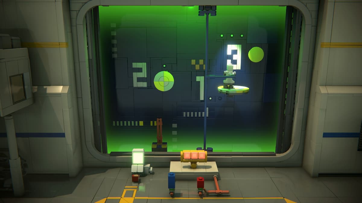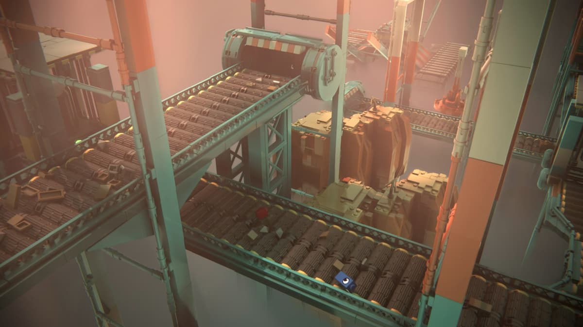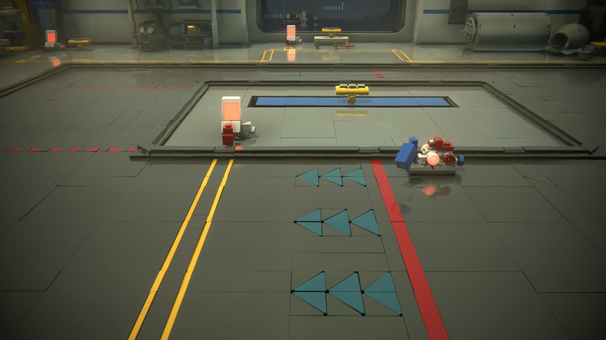 Вот как это работает: Конвейерная лента справа содержит металлические детали, которые можно подобрать магнитом. Игрокам необходимо управлять направлением и силой магнита. Сначала возьмите несколько этих металлических блоков с самой правой ленты и используйте магнит, чтобы перенести их вместе со своим собственным блоком на средний конвейер.