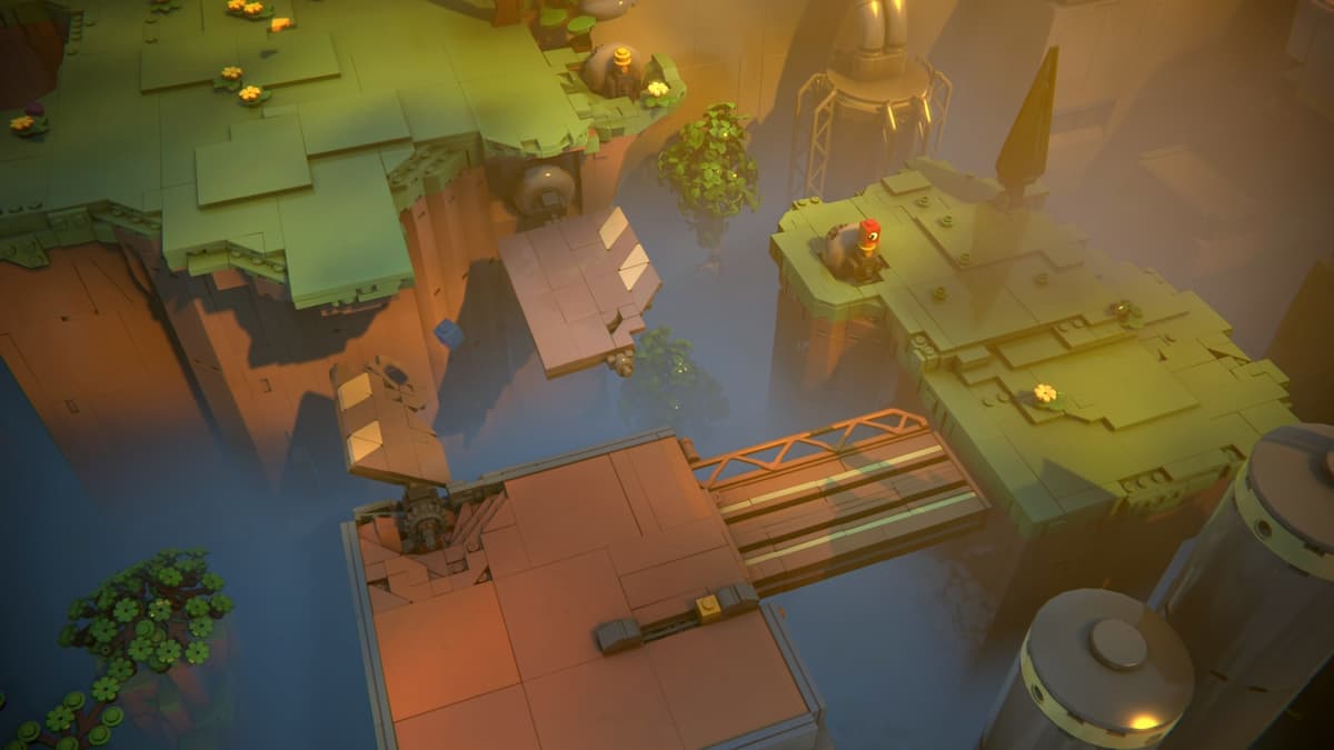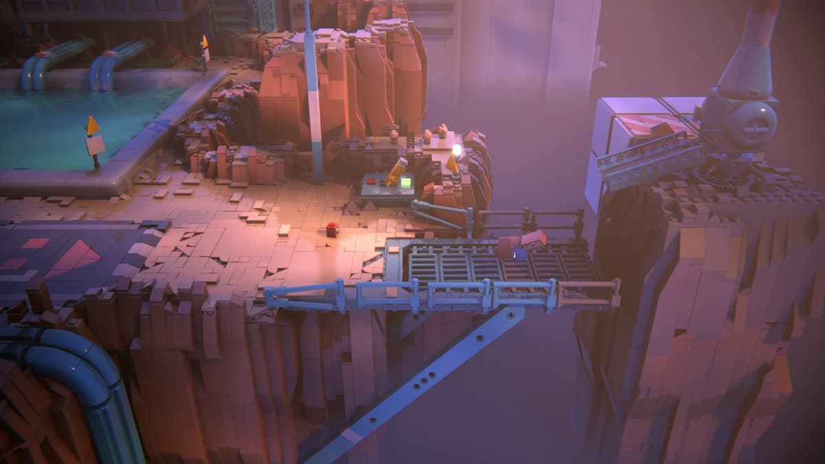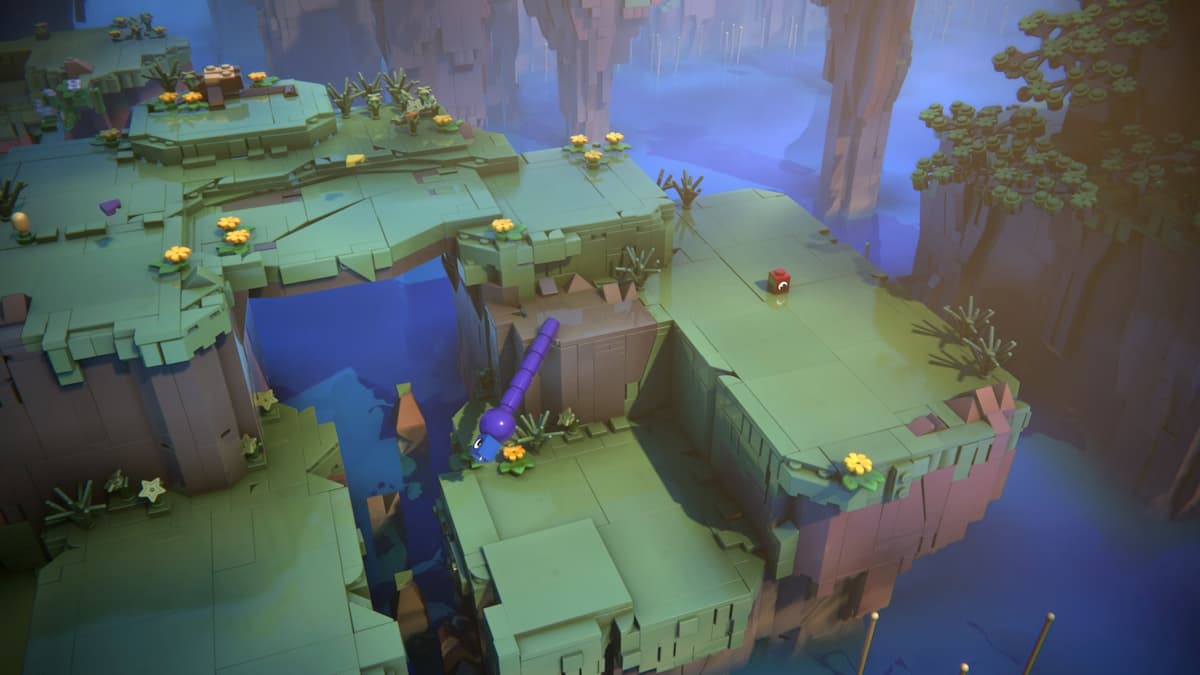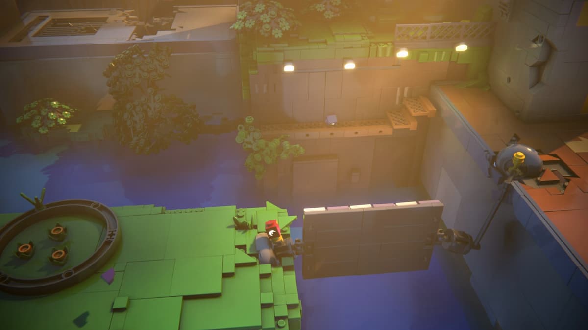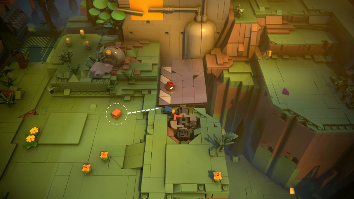 Вторая глава рассказывает, как соединять блоки для создания путей. Чтобы забраться на блок или прикрепиться к нему, нажмите B (на Xbox) или Кружок (на PlayStation). Повторное нажатие кнопки затем разместит блок. Вы можете добавить больше блоков к существующей конструкции, оставаясь с ней соединенным и нажимая B/Кружок. Не волнуйтесь, это проще, чем кажется!