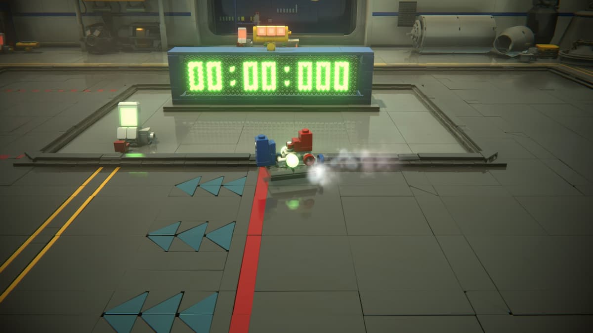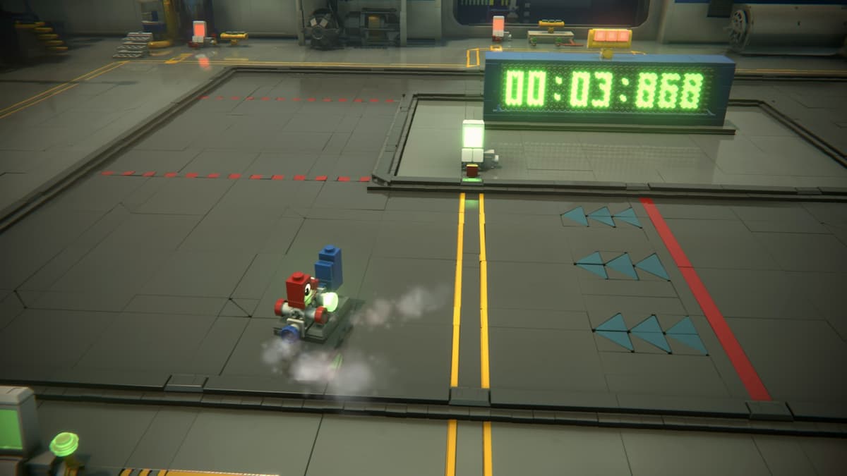 Чтобы начать второе испытание, активируйте таймер, расположенный в центре тренировочного зала. Затем вам обоим нужно сесть в небольшое транспортное средство и проехать на нём, убедившись, что вы пересекли все три красные линии. Один человек должен управлять движением вперёд, а другой — боковым движением. Это простое испытание.