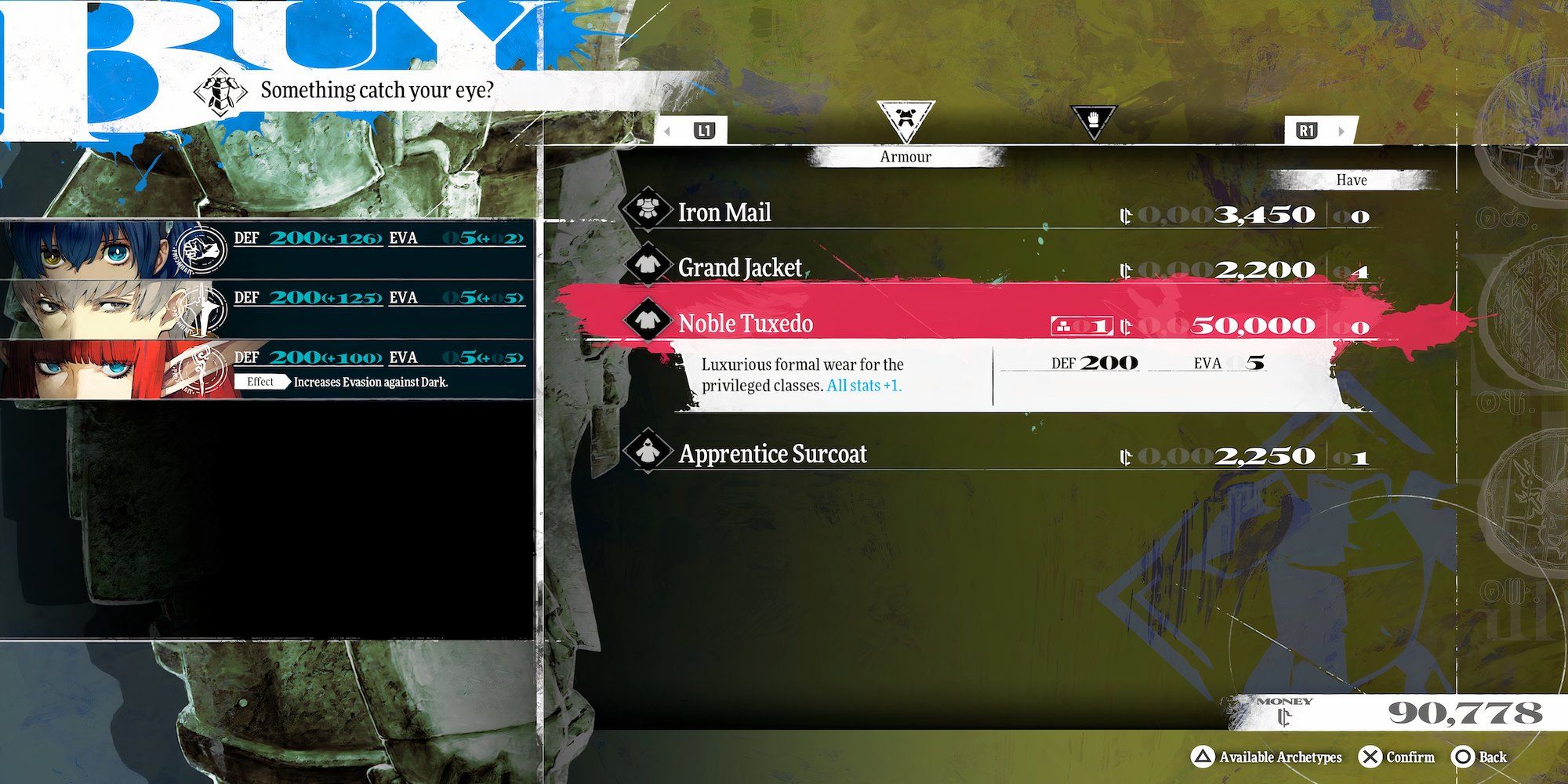 Проще говоря, элегантный смокинг, известный как «Благородный», доступен для покупки в магазине брони Chelonia Shieldworks в Гранд Траде. Однако имейте в виду, что эта вещь имеет немалую цену. Если игроки не накапливают деньги в ходе обширного игрового процесса или не находят спрятанные сокровища, как это делает Рив в первом подземелье Refantazio, они, возможно, не смогут себе это позволить, даже в дни распродаж.