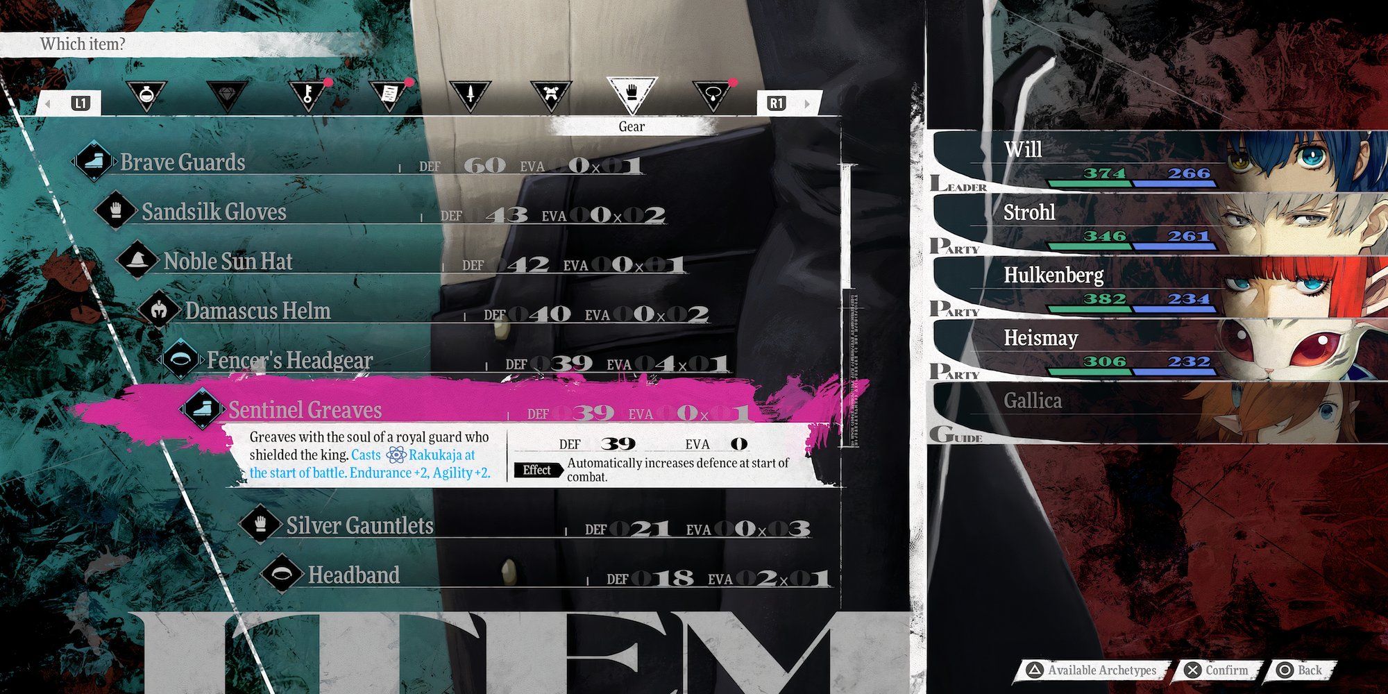 В игре Metaphor: ReFantazio каждый персонаж теперь может владеть одним оружием, предметом защитного снаряжения и аксессуаром. Хотя в обычном разговоре мы называем это защитное снаряжение «доспехами», правильнее использовать стилизованную версию, используемую в игре. Кроме того, мы углубимся в различные типы доспехов, включая головные уборы, нагрудники и обувь. Поскольку на ранних этапах игрового процесса появляются многочисленные типы доспехов, давайте рассмотрим лучшие варианты и способы их обнаружения.