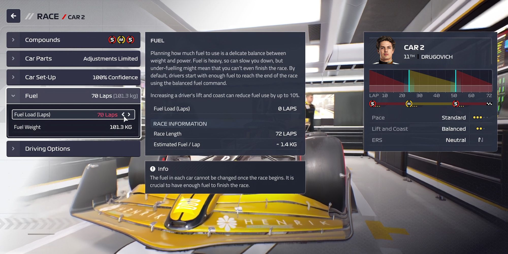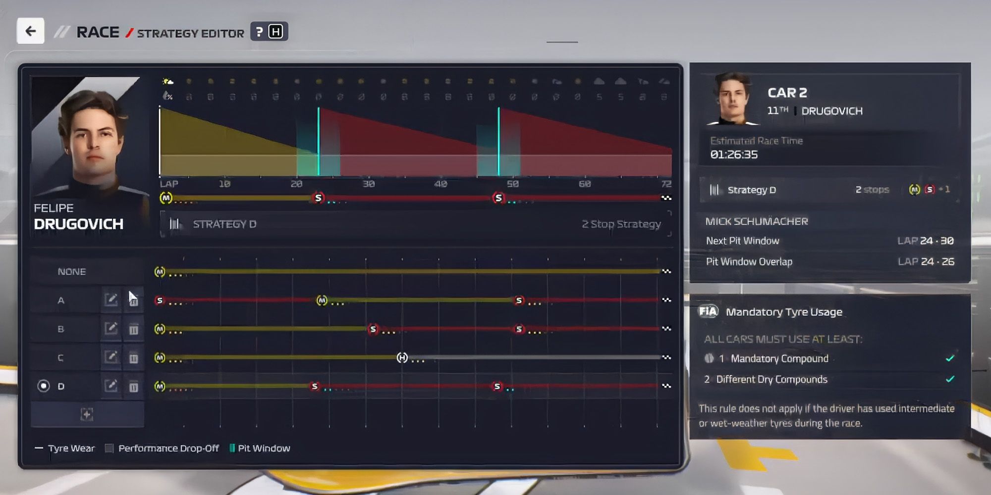 Последний стратегический компонент, о котором игрокам следует знать, — это параметры драйвера. Это повлияет на различные аспекты автомобиля, такие как топливо и шины. Как упоминалось ранее, водителю можно приказать толкнуть либо шины, либо двигатель. Повышенная атака на шины приведет к их более быстрому износу, но значительно сократит время прохождения круга. Лучше всего использовать эти более агрессивные режимы, когда вы преследуете другую машину вплотную или пытаетесь прорваться или попасть в зону действия DRS.