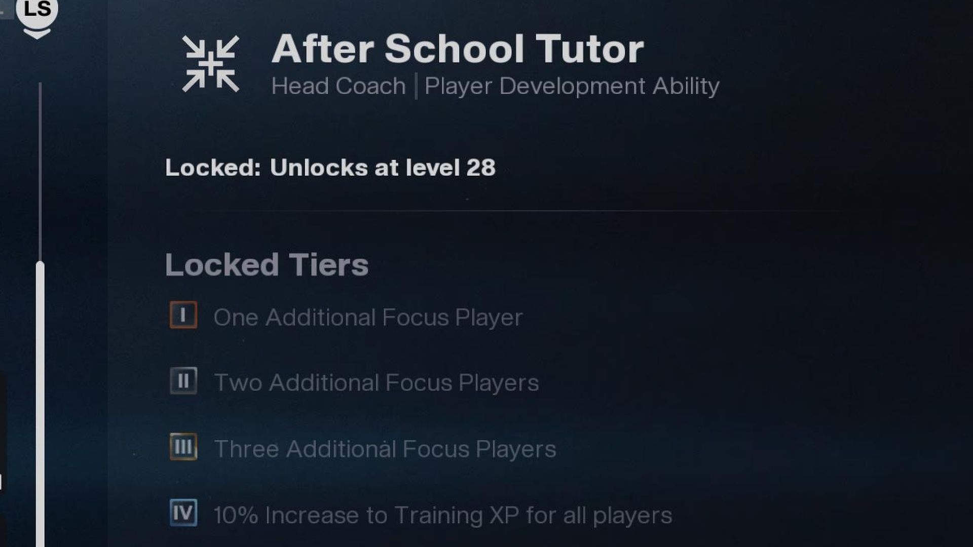 После этого рекомендуется улучшить вашего «Репетитора после уроков». Каждый уровень увеличивает количество дополнительных игроков, которых вы можете тренировать в неделю, а четвертый уровень дает 10% бонус к опыту тренировок для всех игроков. Это значительно упростит развитие игроков. Кроме того, улучшение вашего «Вожатого в лагере» сделает мини-игры в тренировочном лагере гораздо более полезными, увеличивая награды в виде опыта и даже повышая вероятность улучшения характеристик развития для игроков четвертого уровня.