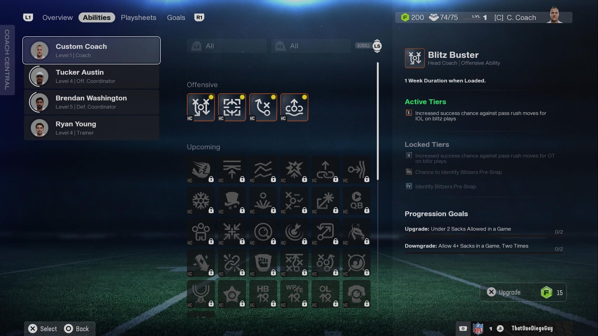 Чтобы получить дополнительные очки навыков, вам следует выполнить задания, перечисленные в Центре тренеров. Для специалистов по нападению важно набирать ярды с передач, забивать тачдауны в беге и достигать сопоставимых достижений на поле.