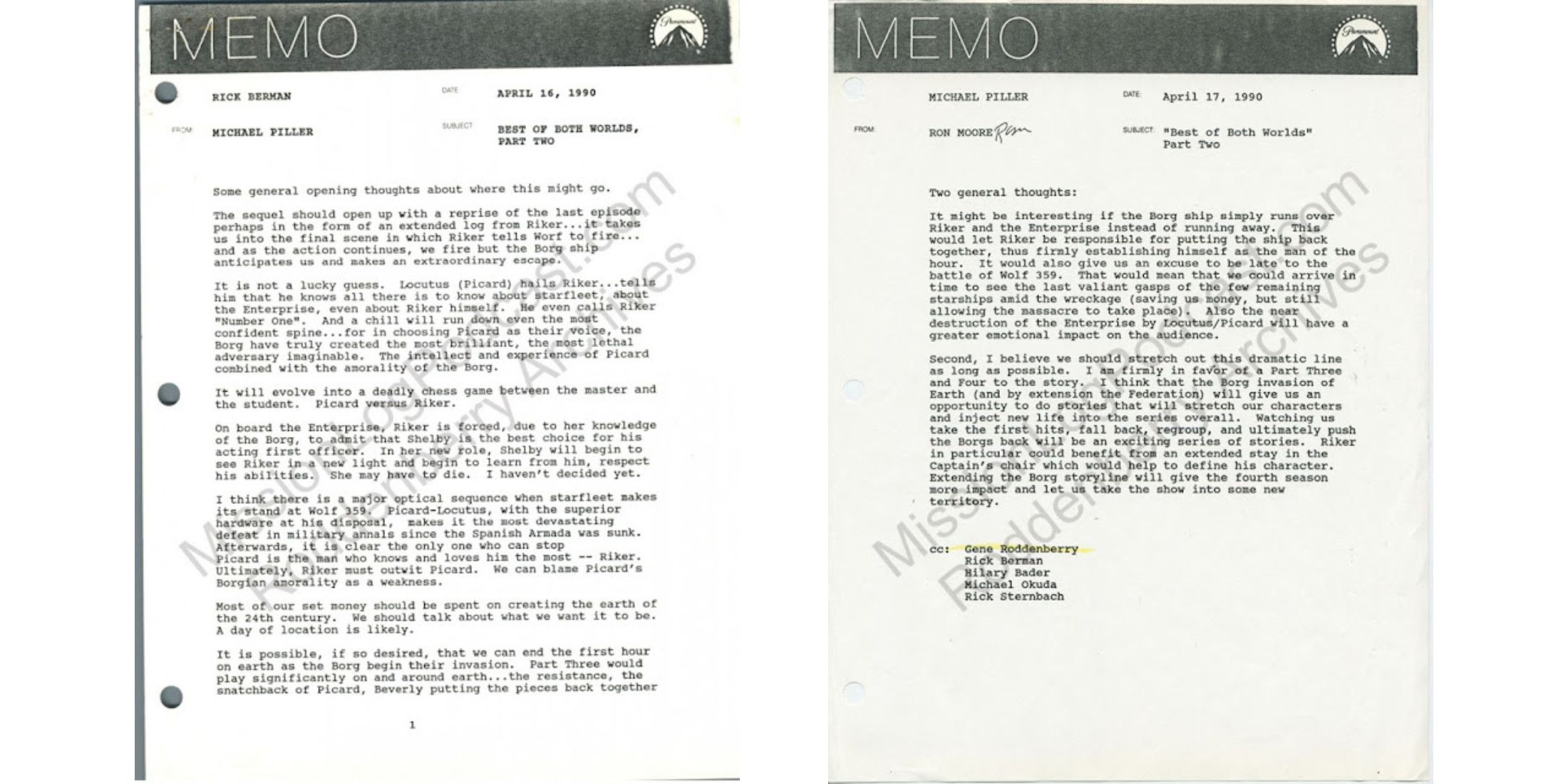 Изначально масштабная двухсерийная история эпизода ‘The Best of Both Worlds’ сериала ‘Звездный путь: Следующее поколение’ планировалась значительно больше. Меморандум о производстве 1990 года показал, что напряженное противостояние между Боргом и экипажем Энтерпрайз-D изначально задумывалось как серия из четырех эпизодов.