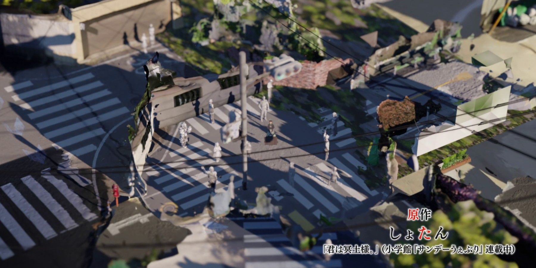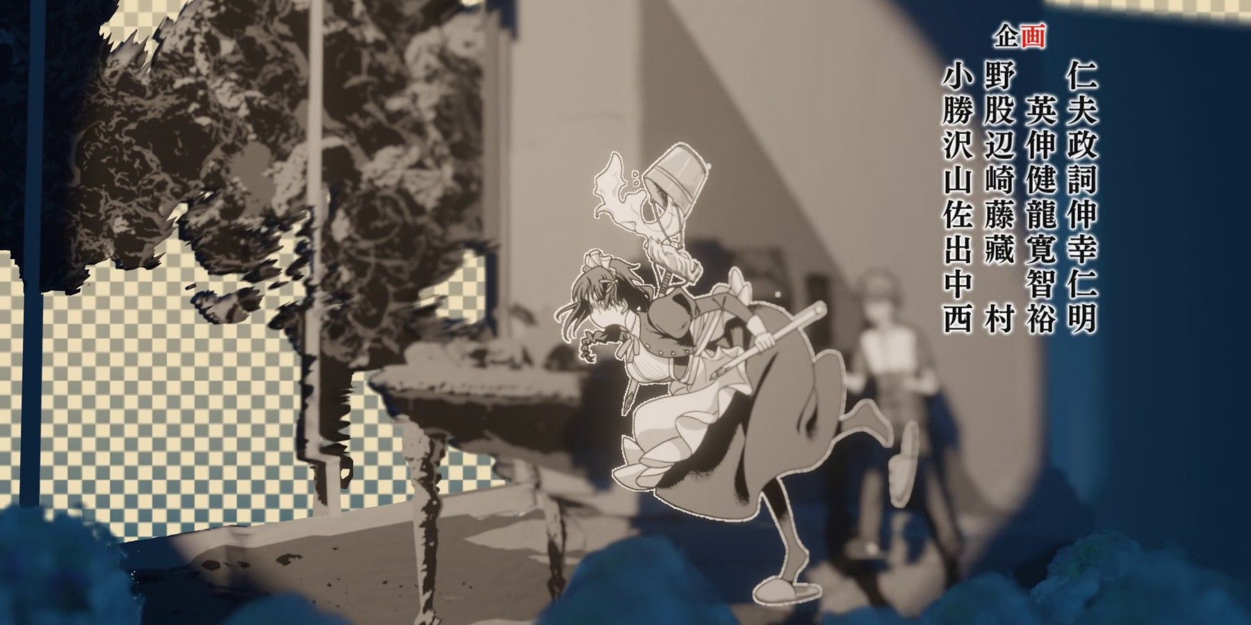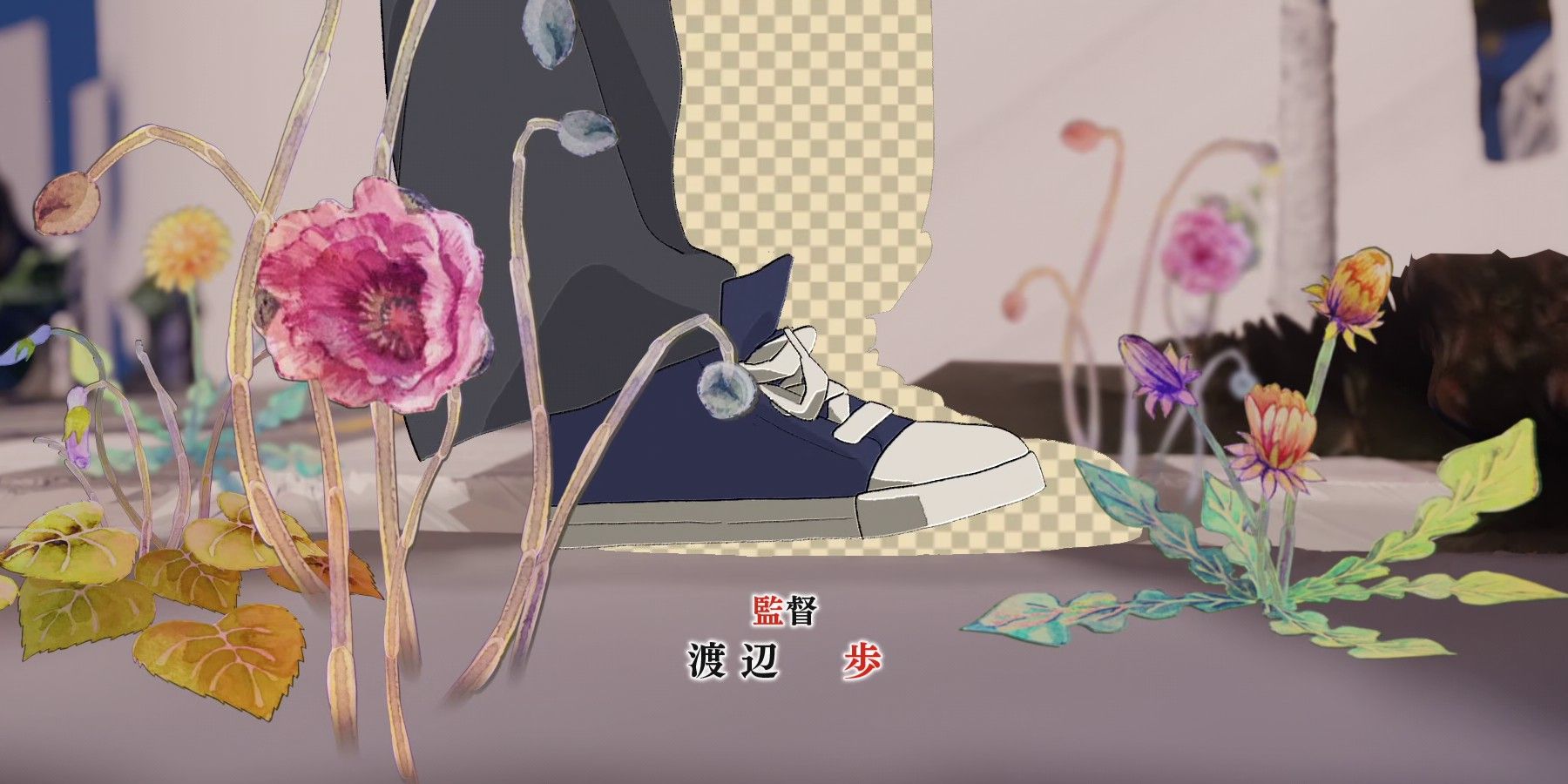 Это начало похоже на альбом для вырезок, в нем сочетаются различные типы медиа, чтобы предложить многослойное визуальное впечатление. Художником по раскадровке этой вступительной сцены является Сахо Нандзё из qootain, анимационной студии, ответственной за 2D и 3D работу над шестым открытием Человека с бензопилой. Некоторые детали, похоже, созданы из реальных изометрических моделей, сделанных из папье-маше, как это видно в сценах, изображающих новый район Юки, где фигурка, похожая на нее, расположена среди пустых моделей, сделанных из мятой бумаги, как в финальной части аниме 2011 года «Эдем из». Восток. Есть множество вырезов и обильное использование покадровой анимации, причем некоторые модели также расписаны вручную акварелью, а также включены реальные фотографии и видео.