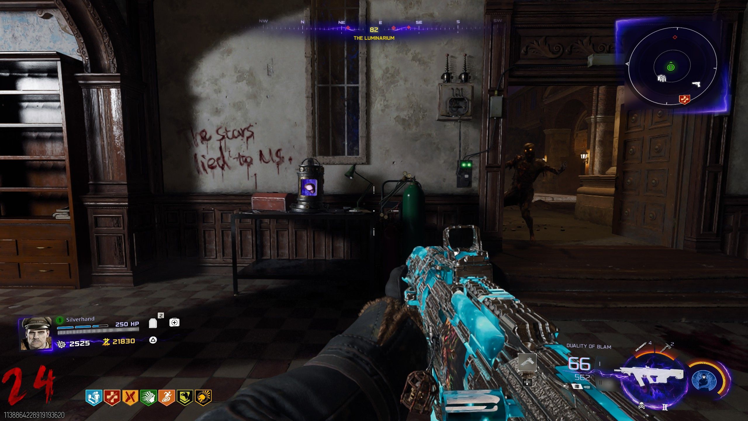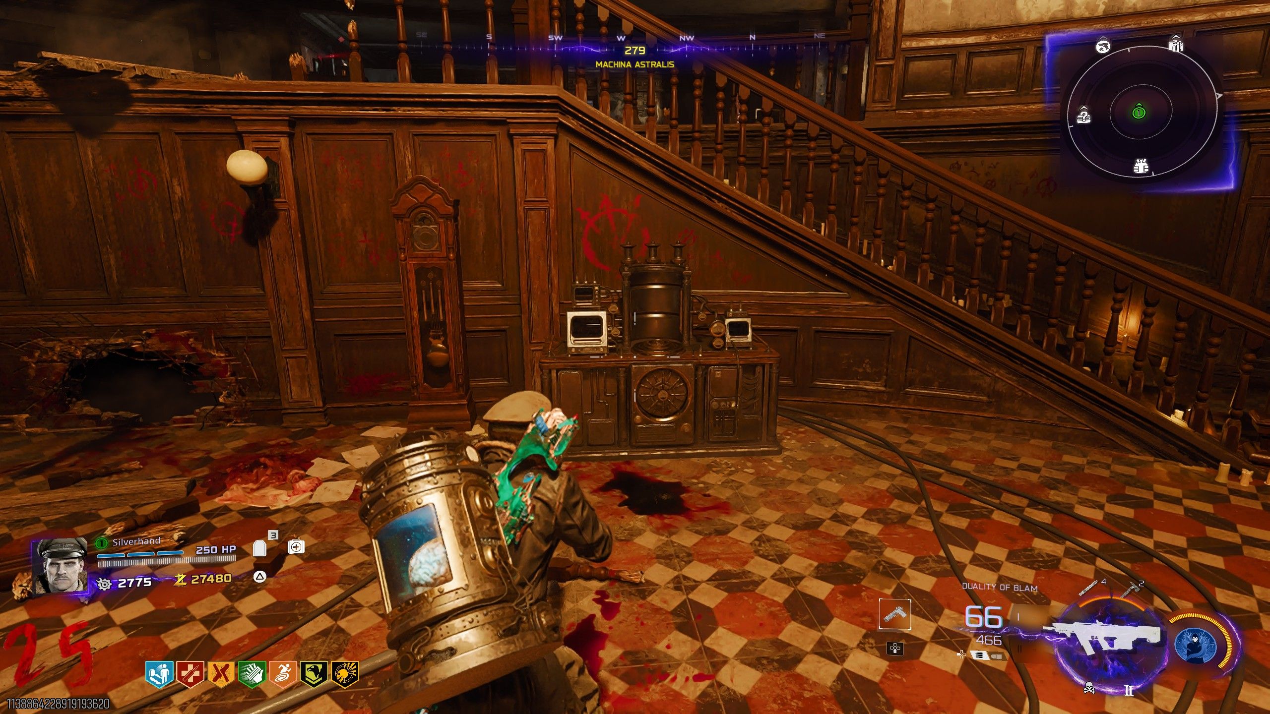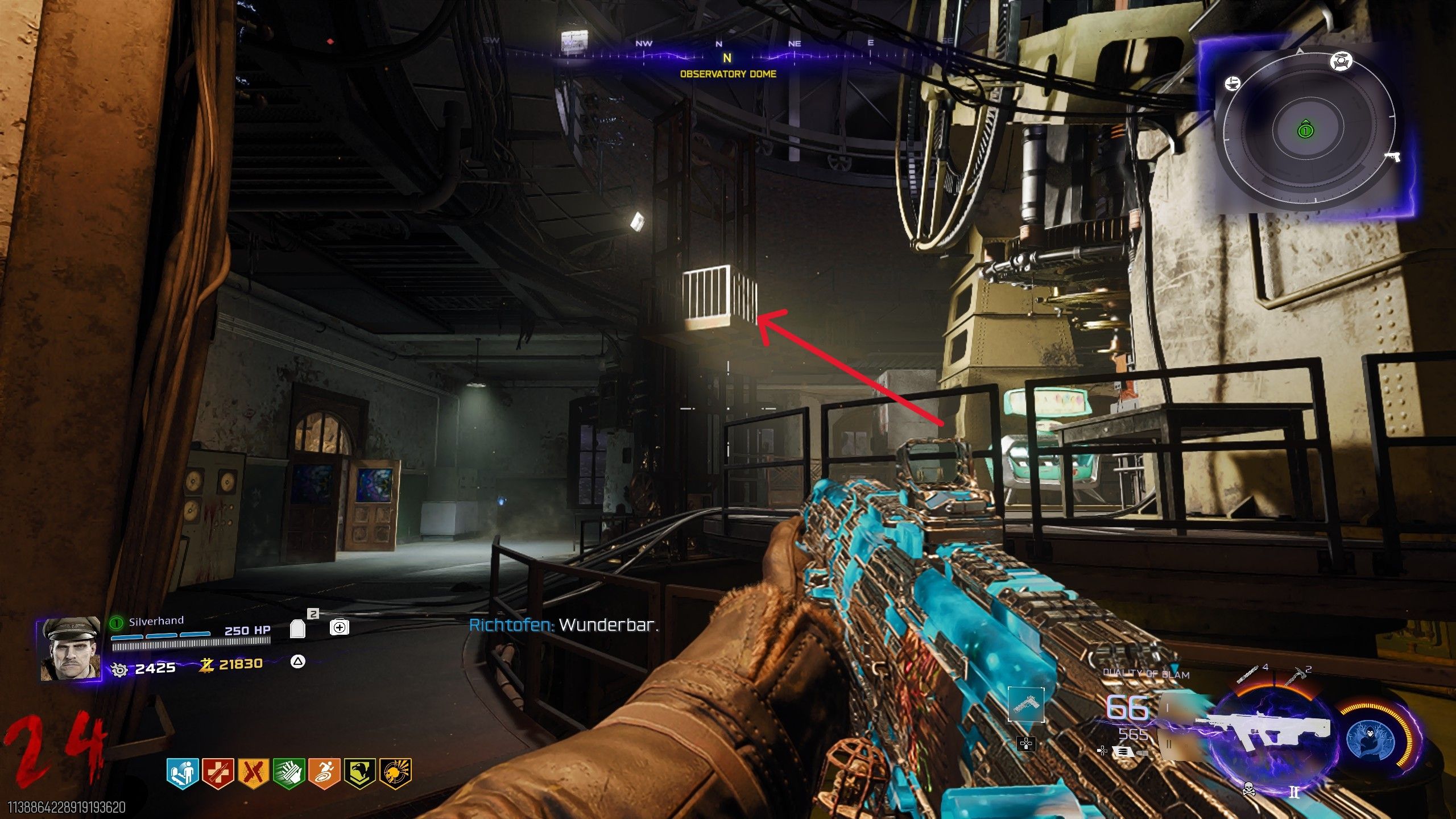 • Уничтожьте O.S.C.A.R. с помощью ловушки «Обсерваторский купол», заставив его стоять в лазерном луче, который активируется стрельбой по 5 газовым трубам, из которых шипит пар, а затем взаимодействием с пианино напротив Pack-a-Punch, чтобы направить телескоп на Солнце.