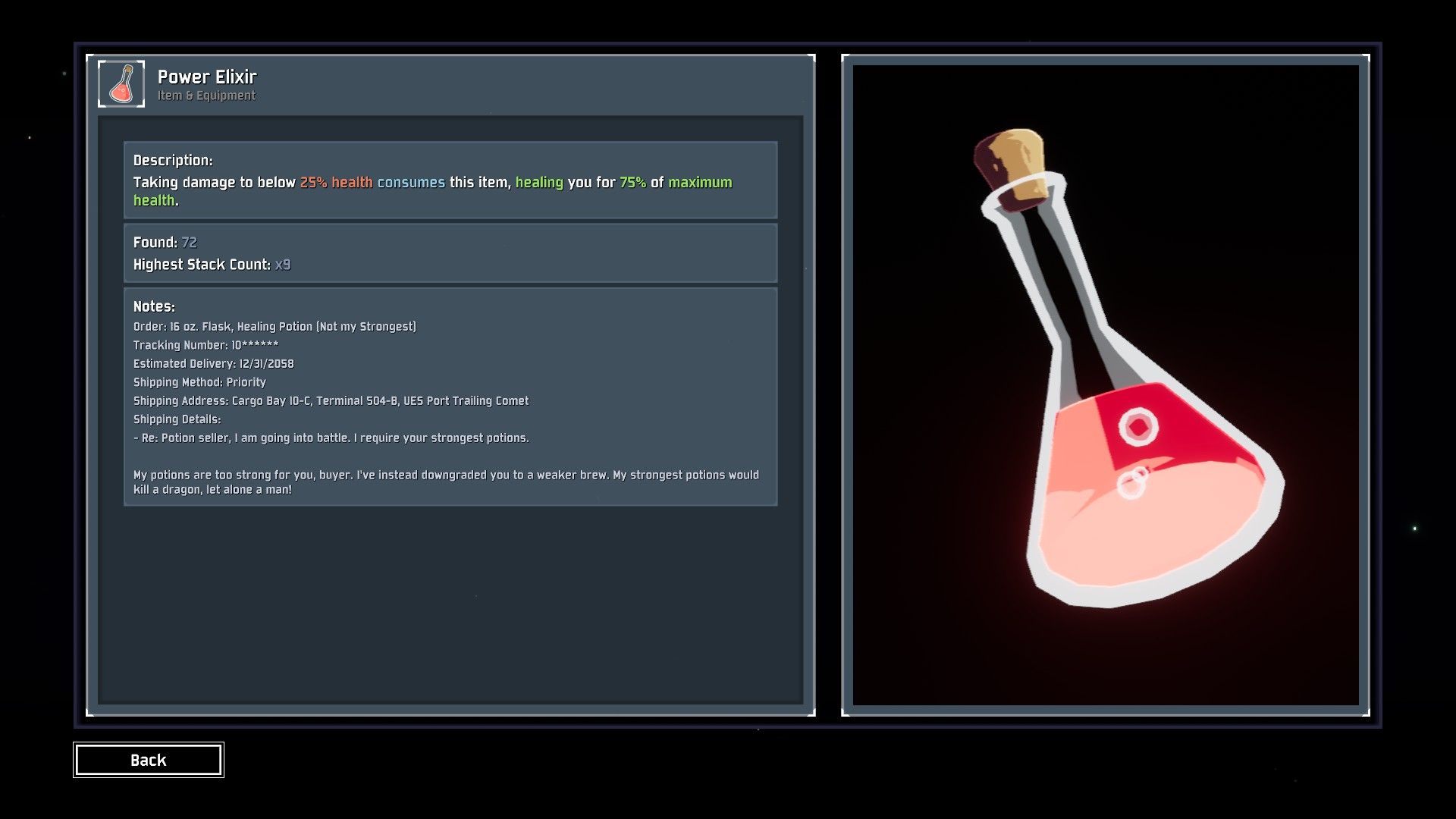 Стоит отметить, что в Risk of Rain 2 имеется механизм безопасности, известный как защита от одного выстрела, который не позволяет игрокам упасть ниже 10% от общего здоровья из-за одной атаки. Это позволяет Эликсиру Силы чаще активироваться в сценариях, где в противном случае это привело бы к возврату к экрану выбора персонажа.