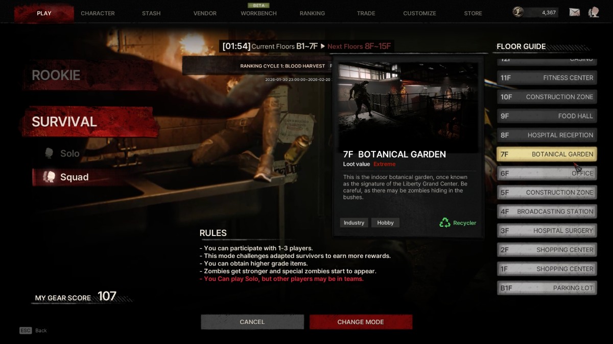 Нажатие на баннер в правом нижнем углу (где отображается ваш показатель экипировки) откроет меню игровых режимов, позволяя вам выбрать игру в одиночку или в отряде. На том же экране вы найдете руководство по различным этажам на правой стороне.