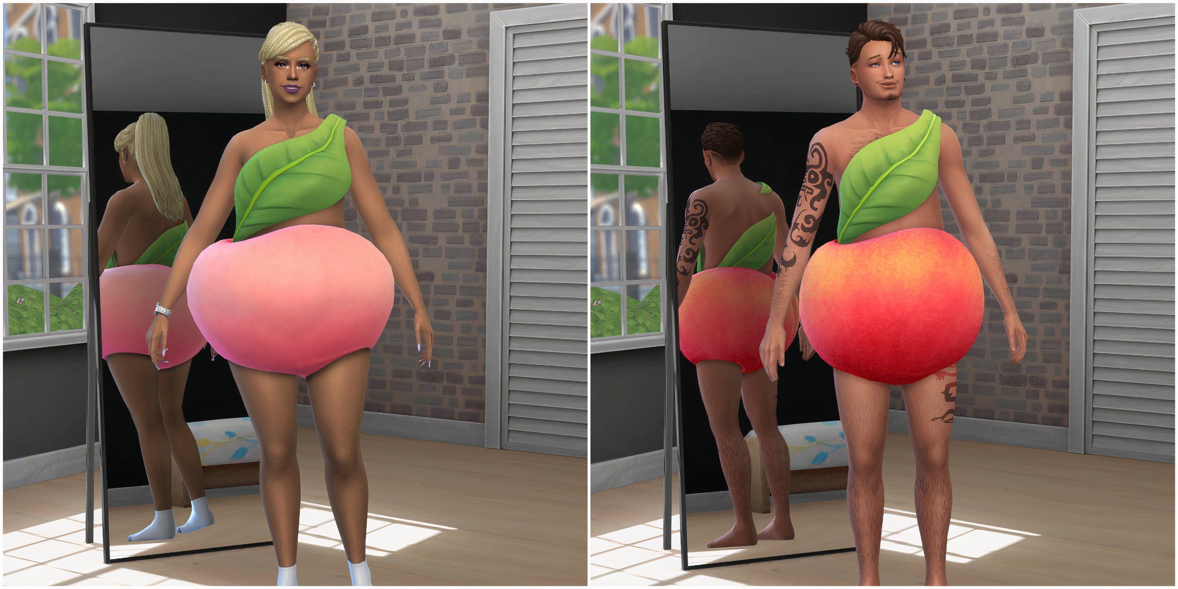 Персик, известный не только своим чувственным подтекстом, но и популярный ингредиент сладких блюд, предлагает интригующее сочетание очарования и кулинарного удовольствия. Симы, надевшие костюм этого фрукта, могут почувствовать желание приготовить вкусные пироги или сапожники, погрузившись в символику сладости, которую он воплощает. Персиковый костюм, сочетающий в себе уникальное сочетание флирта и кухонного творчества, станет очаровательным выбором для любого сима, желающего добавить немного волнения в свои романтические переживания.