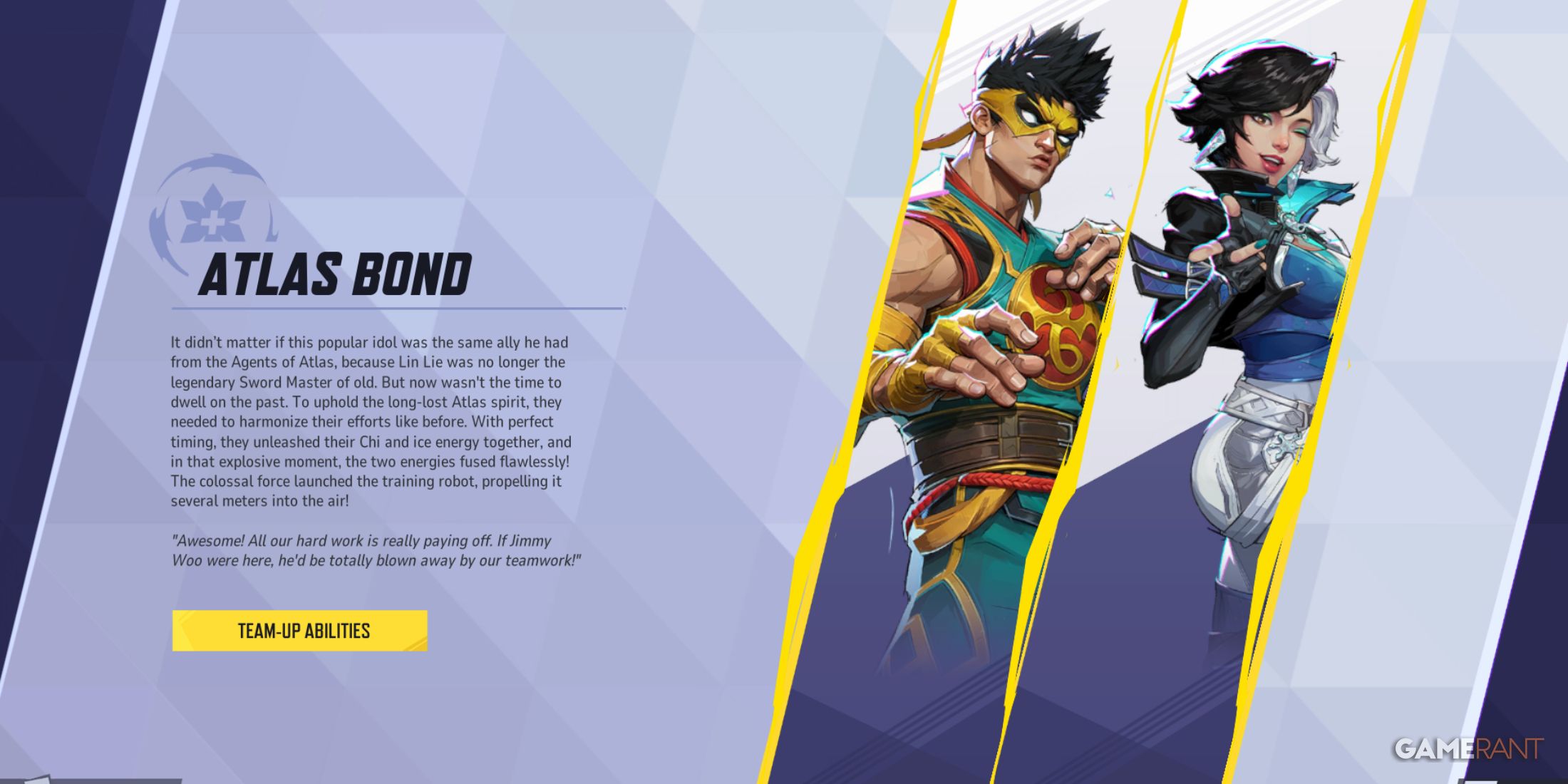 Когда Железный Кулак использует энергию Шоу-Лао, Луна Сноу приобретает окружающий ее ледяной щит. Этот щит не только замедляет и замораживает врагов, но и восстанавливает здоровье союзников, находящихся в непосредственной близости, повышая их выносливость на поле боя. Использование этой командной силы позволяет поддерживать как бойцов ближнего боя, так и наносящих урон дальнего боя, тем самым создавая выгодную ситуацию против конкурирующих команд.