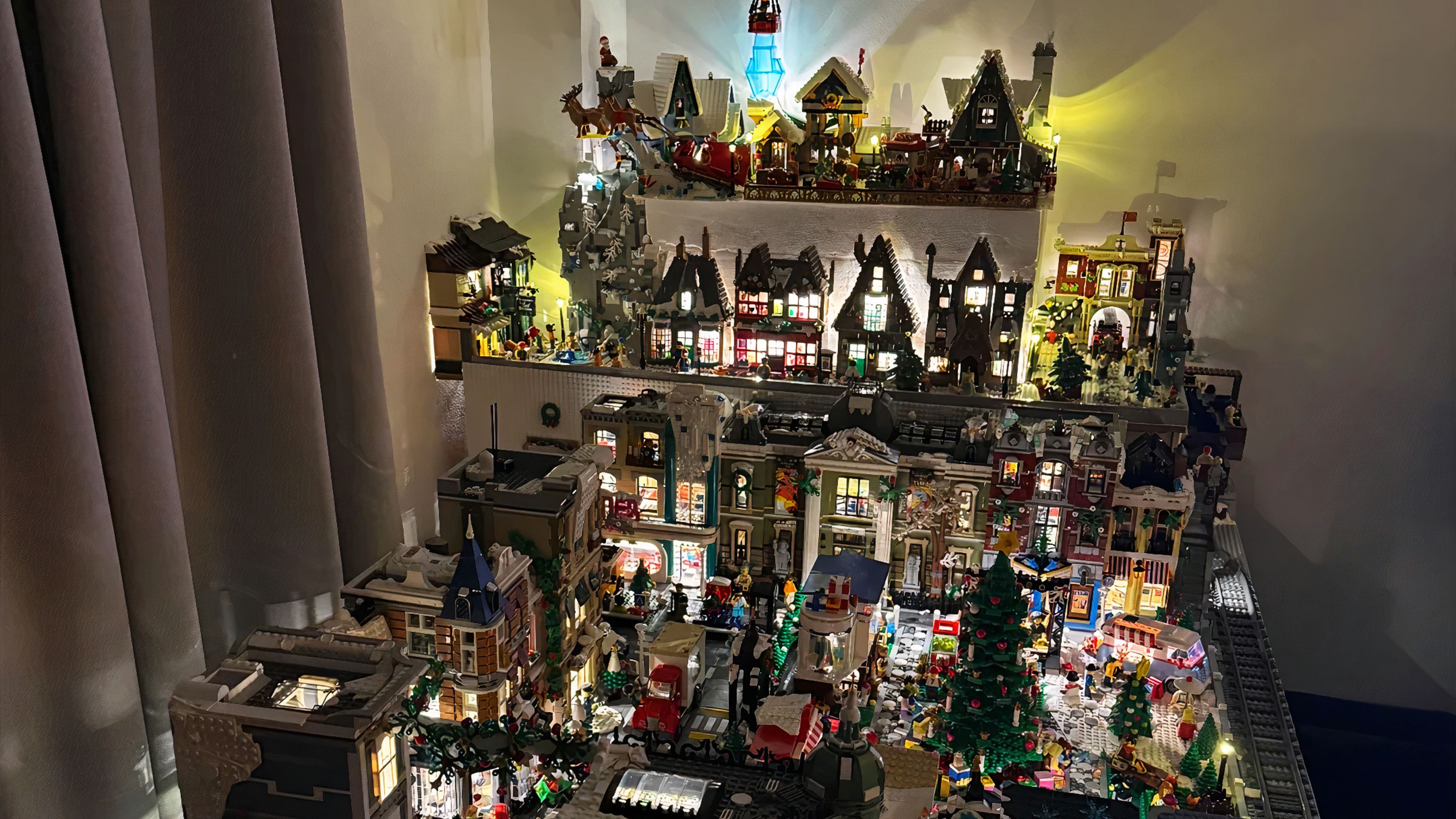Недавнее творение зимней деревни LEGO появилось от пользователя Reddit Venti014. Что делает эту сборку особенной, так это то, как она выглядит в темноте – освещение действительно заставляет её сиять. Улицы выглядят мокрыми от дождя, с пешеходными переходами и лежачими полицейскими, а свет льется из ярко освещенных магазинов. Вы даже можете увидеть внутри зданий через большие окна. Город простирается вверх на несколько уровней, и на самом верху вы найдете Санту и его сани рядом с воздушным шаром.
