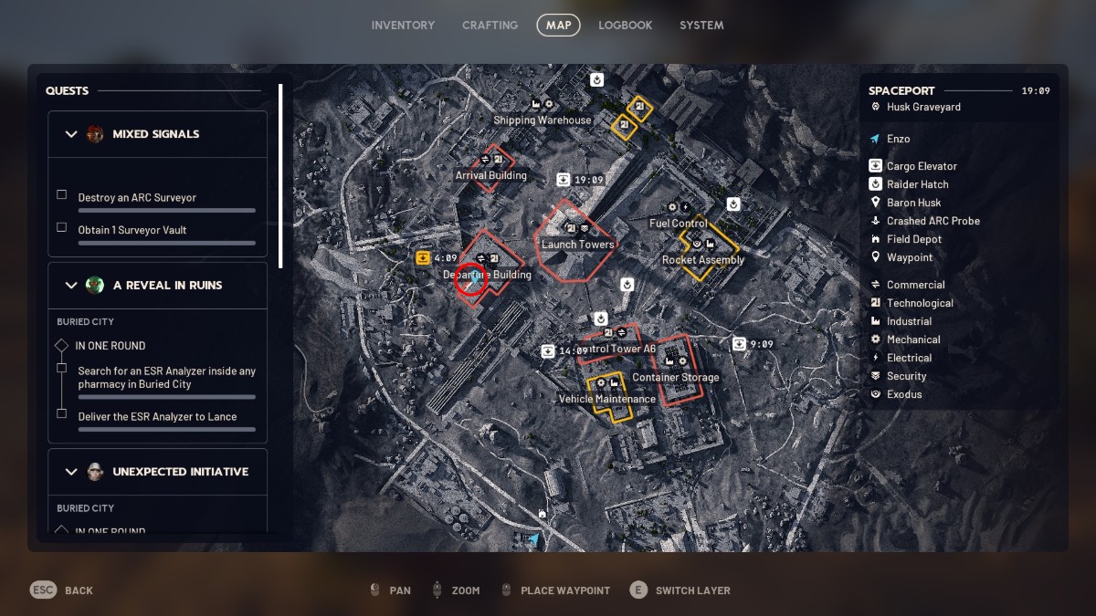 Здание Отправления – самое выгодное место для поиска добычи в игре. Оно похоже на обыск Здания Космических Путешествий в Затопленном Городе, но сжато до всего двух этажей вместо шести. Офисный уровень заполнен терминалами, ящиками, компьютерами, предметами на полках и столах, а также контейнерами, которые можно обыскать. Ожидайте перестрелку – там часто бывает жарко! Но если вы присоединитесь к рейду, который уже в процессе, вы сможете найти еще больше добычи и постоянно покидать его с полным рюкзаком.