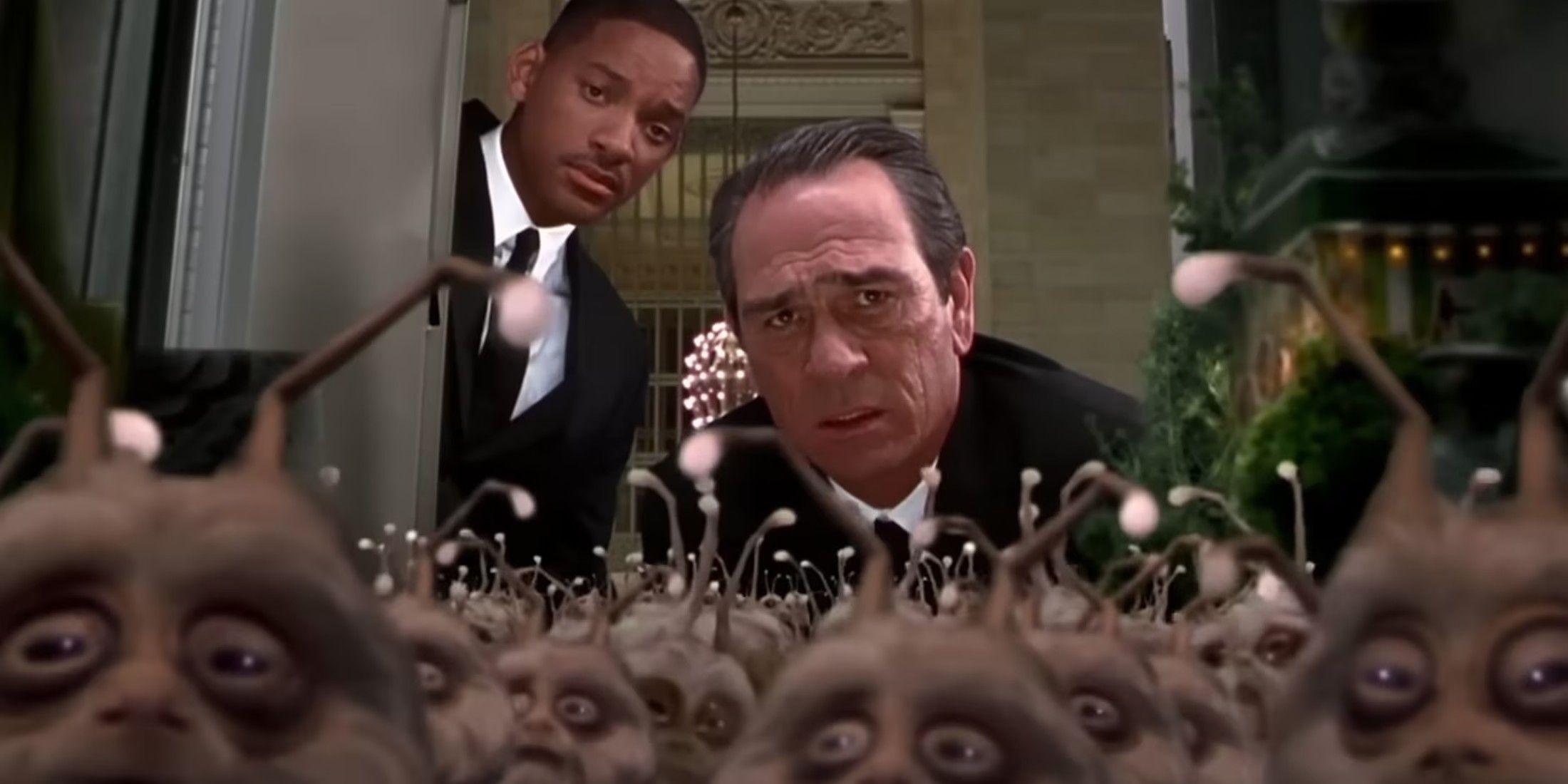 Франшиза Люди в черном, одна из редких научно-фантастических комедий об инопланетянах, в которых успешно сочетаются напряженные действия с множеством шуток и юмора, является типичным местом для любителей жанра «охота на инопланетян». Его культовая идея, сосредоточенная на элитных правительственных агентах, которые тайно отслеживают и контролируют внеземную деятельность — умный поворот традиционных архетипов охотников на монстров — делает его одним из самых узнаваемых произведений в жанре. Своим непреходящим очарованием франшиза во многом обязана динамичному дуэту Уилла Смита и Томми Ли Джонса, чья химия остается непревзойденной.