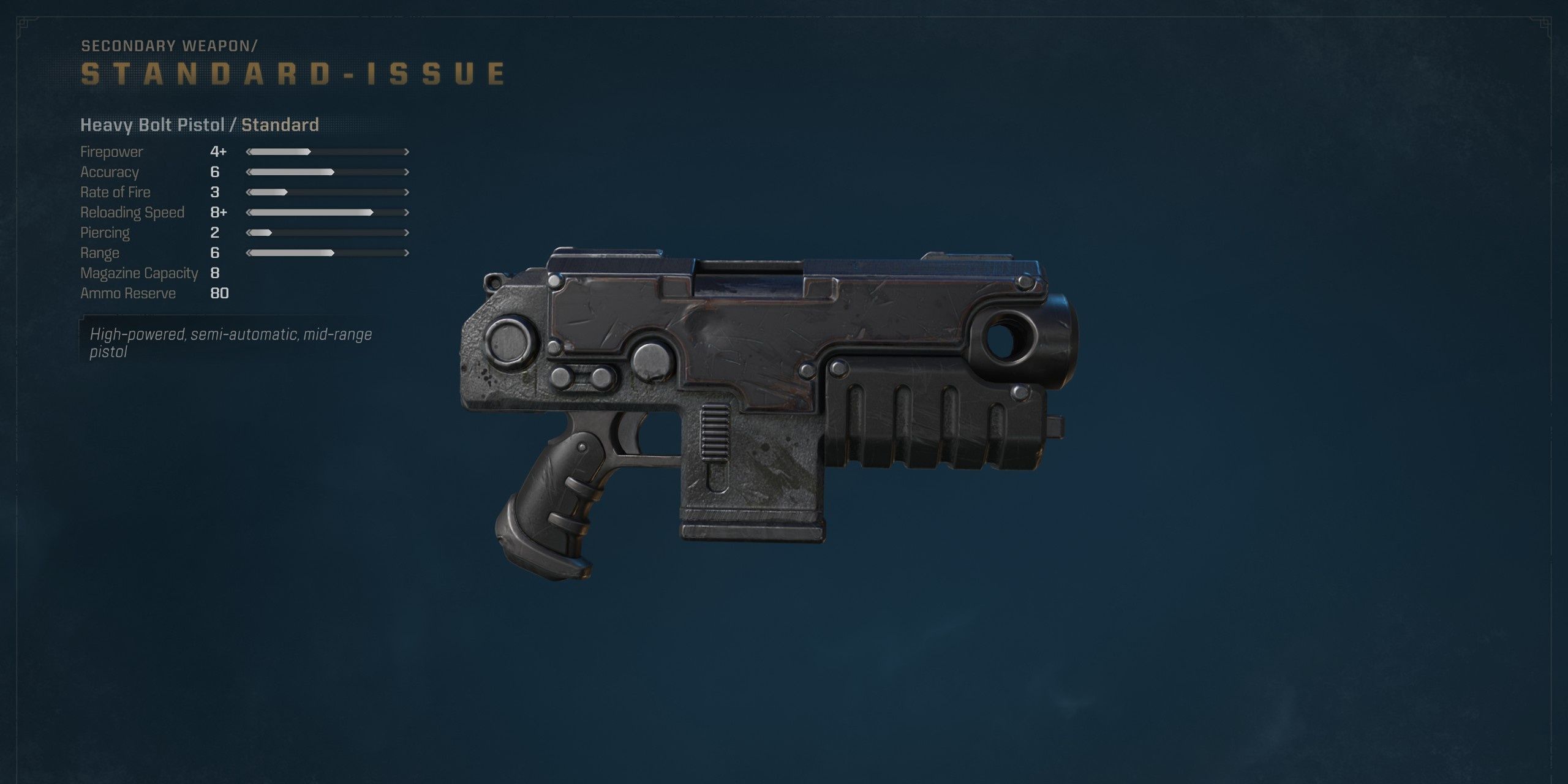 Если вы ищете более точное оружие, вам идеально подойдет тяжелый болт-пистолет. Он может похвастаться относительно хорошей дальностью стрельбы для одноручного оружия и быстрой перезарядкой по сравнению с другим оружием, стреляющим в умеренном темпе. Тяжелый болт-пистолет обладает мощной силой, затрудняя попытки маленьких тиранидов броситься или прыгнуть на Ультрадесантников, поскольку их отталкивает удар каждой пули.